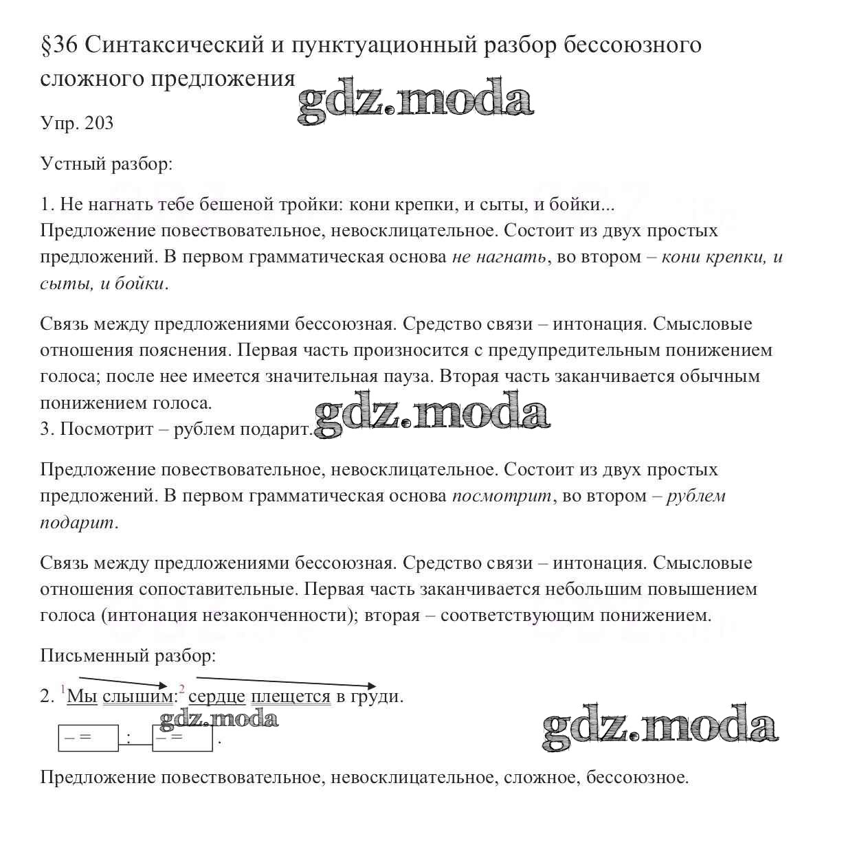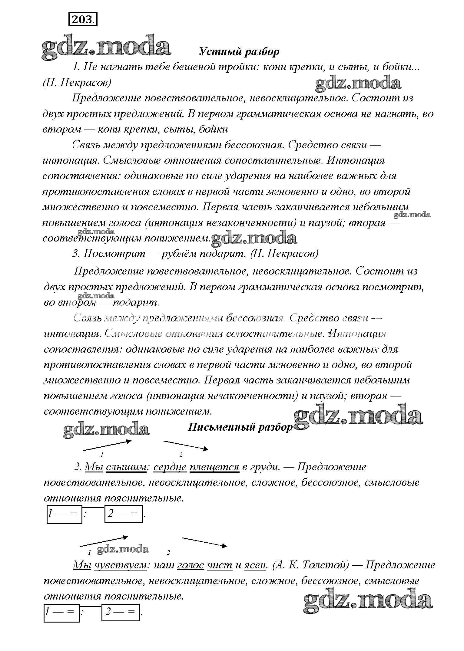 ОТВЕТ на задание № 203 Учебник по Русскому языку 9 класс Тростенцова