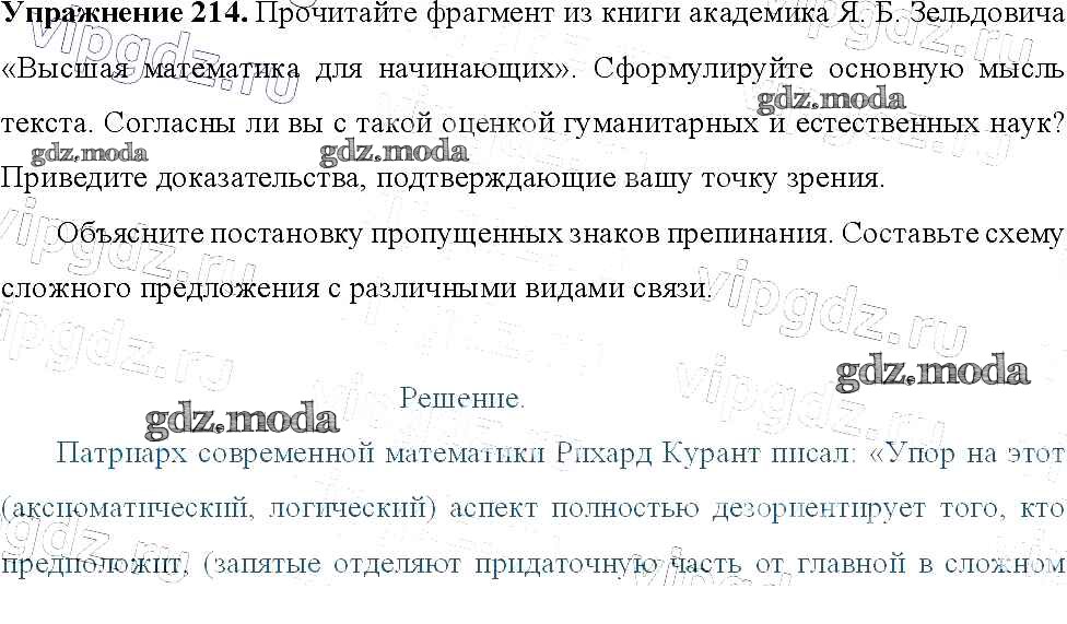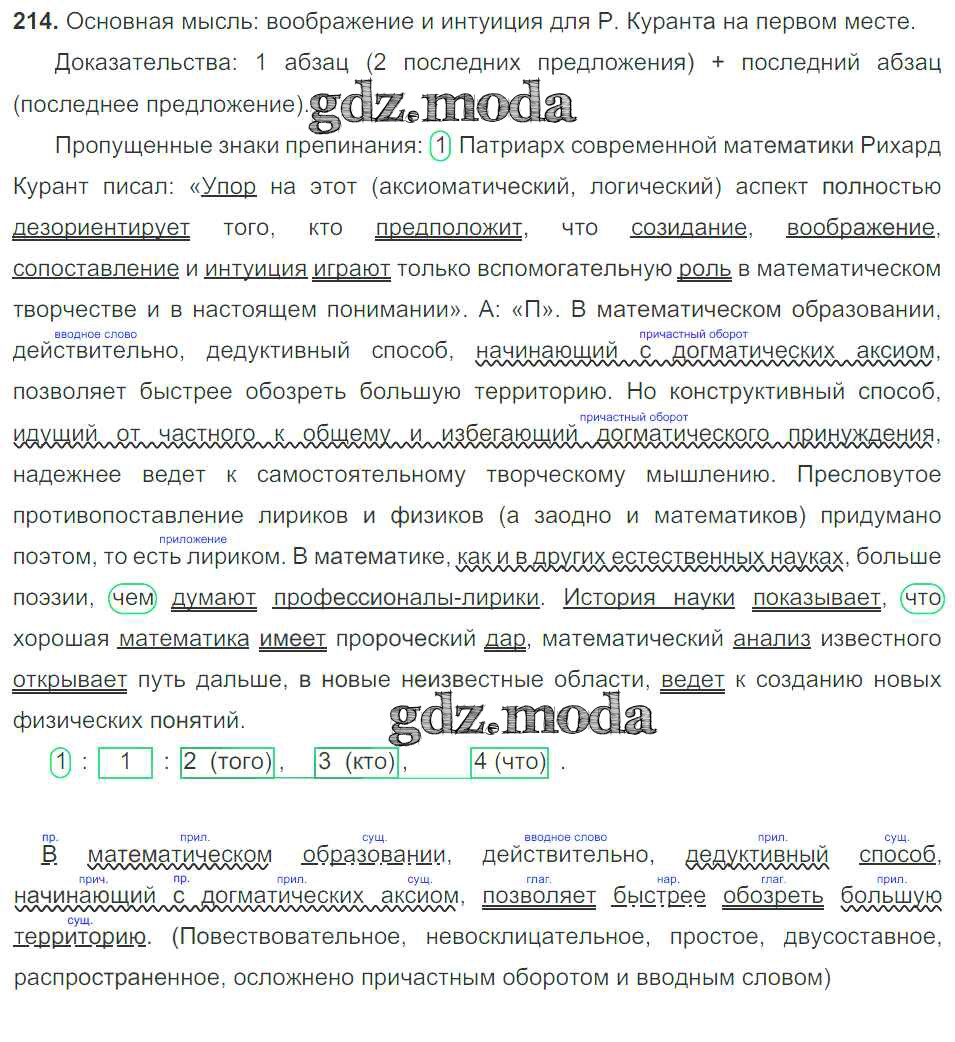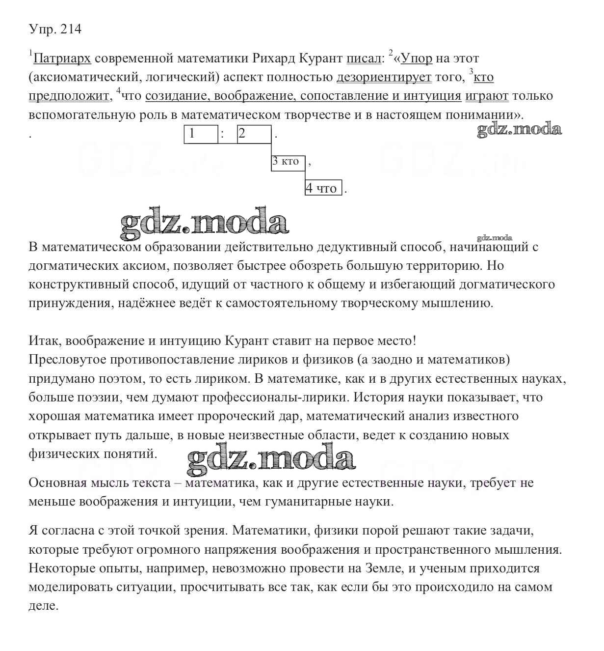 ОТВЕТ на задание № 214 Учебник по Русскому языку 9 класс Тростенцова