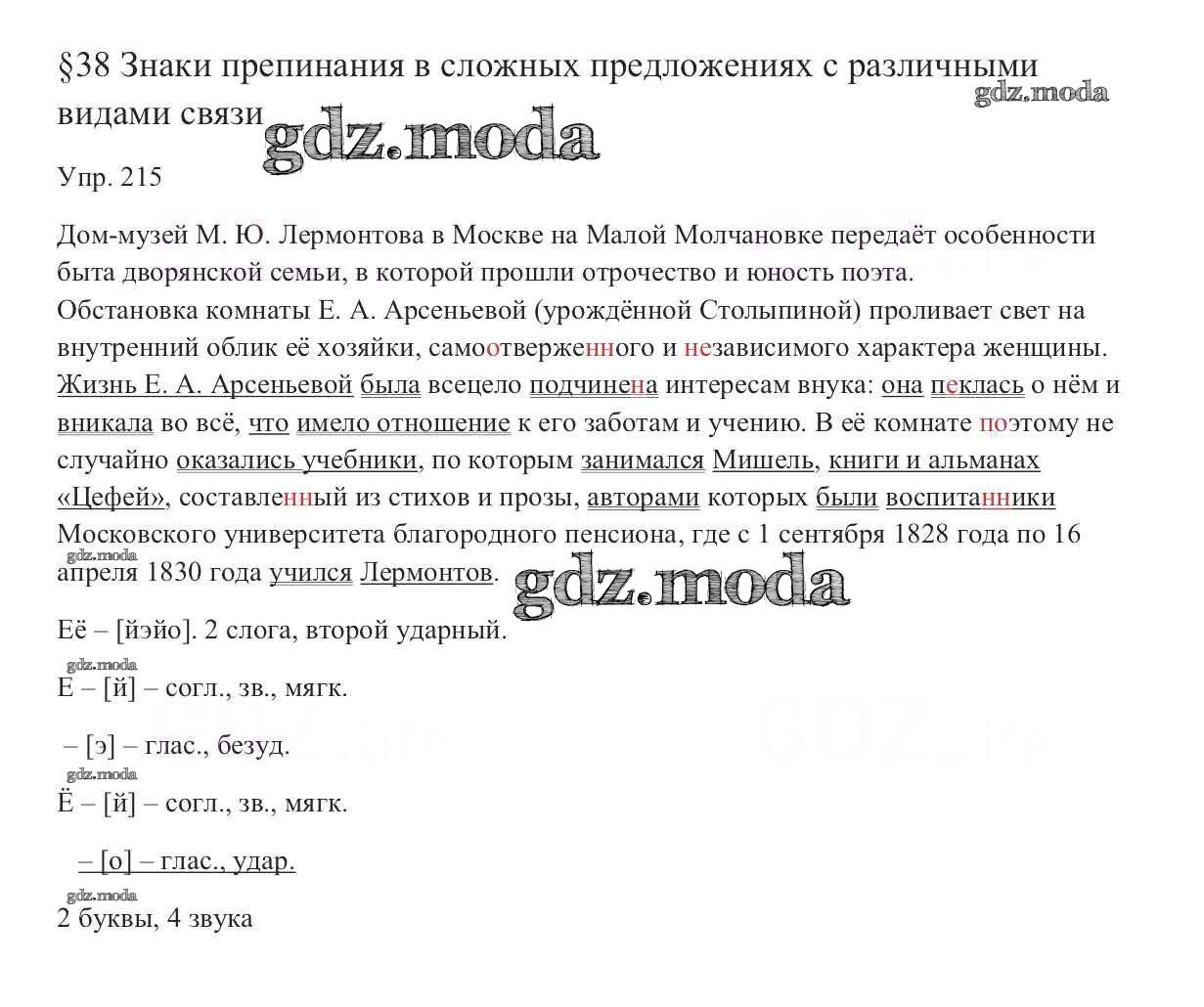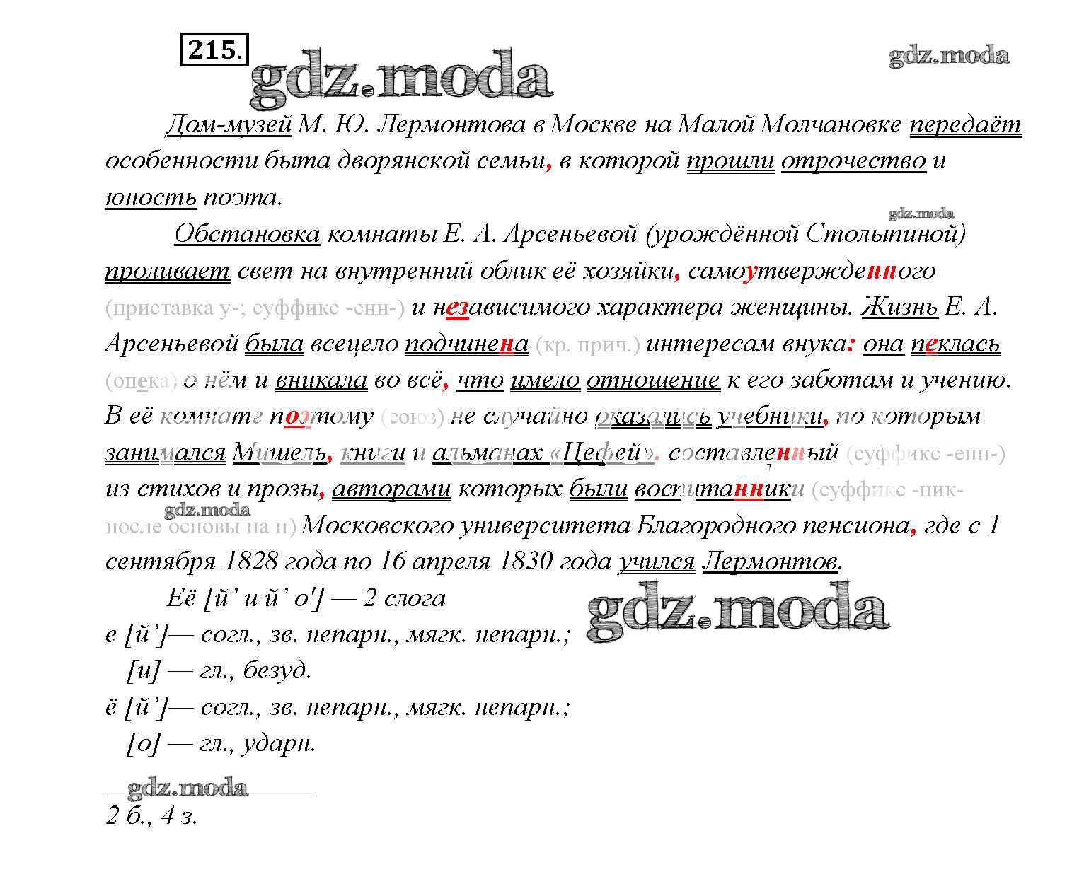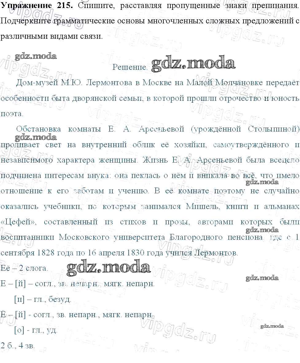 ОТВЕТ на задание № 215 Учебник по Русскому языку 9 класс Тростенцова