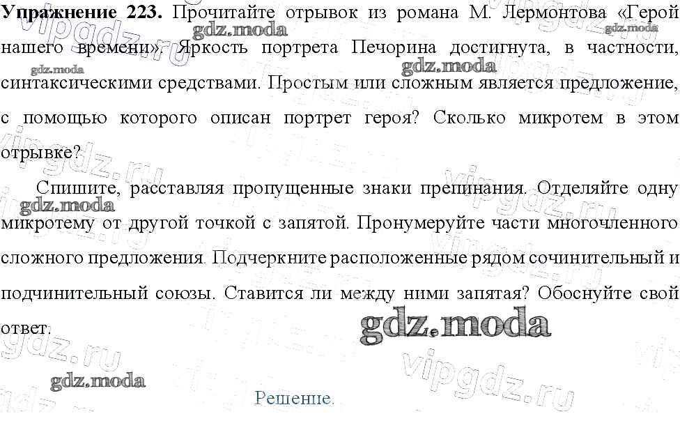 ОТВЕТ на задание № 223 Учебник по Русскому языку 9 класс Тростенцова