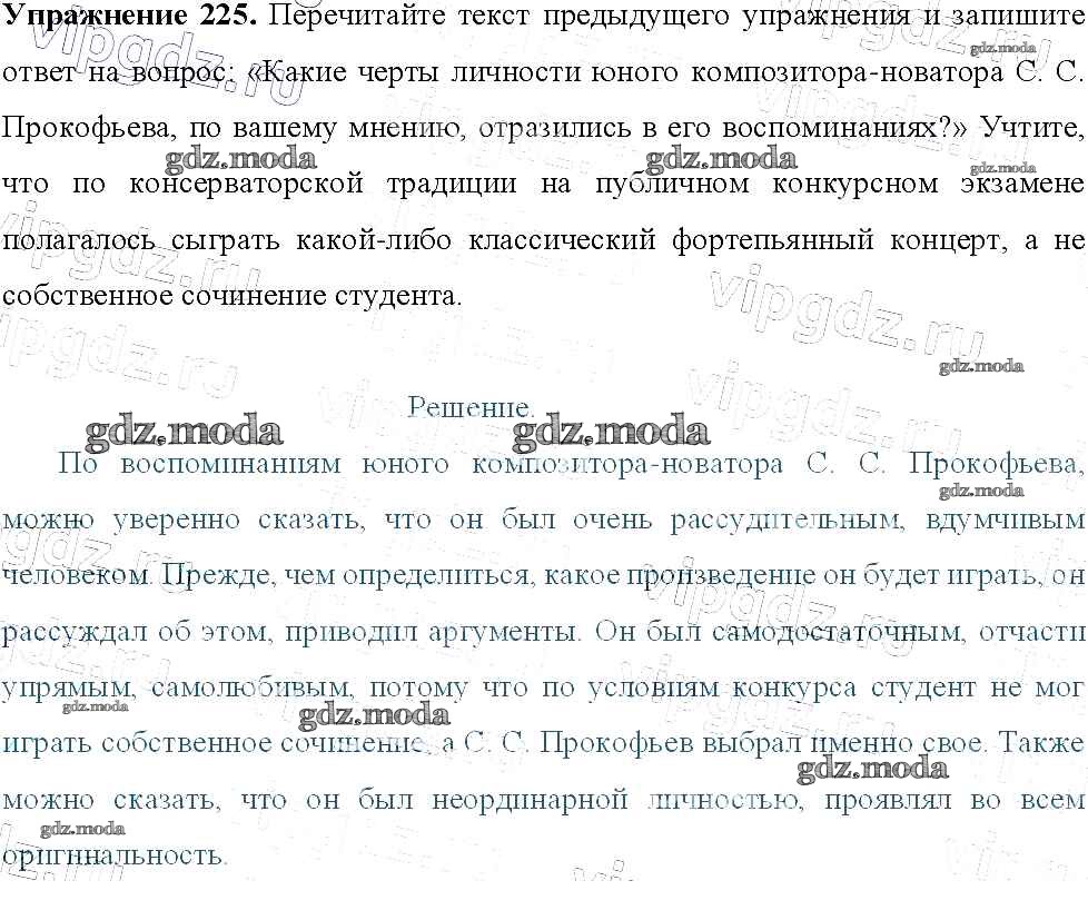 ОТВЕТ на задание № 225 Учебник по Русскому языку 9 класс Тростенцова