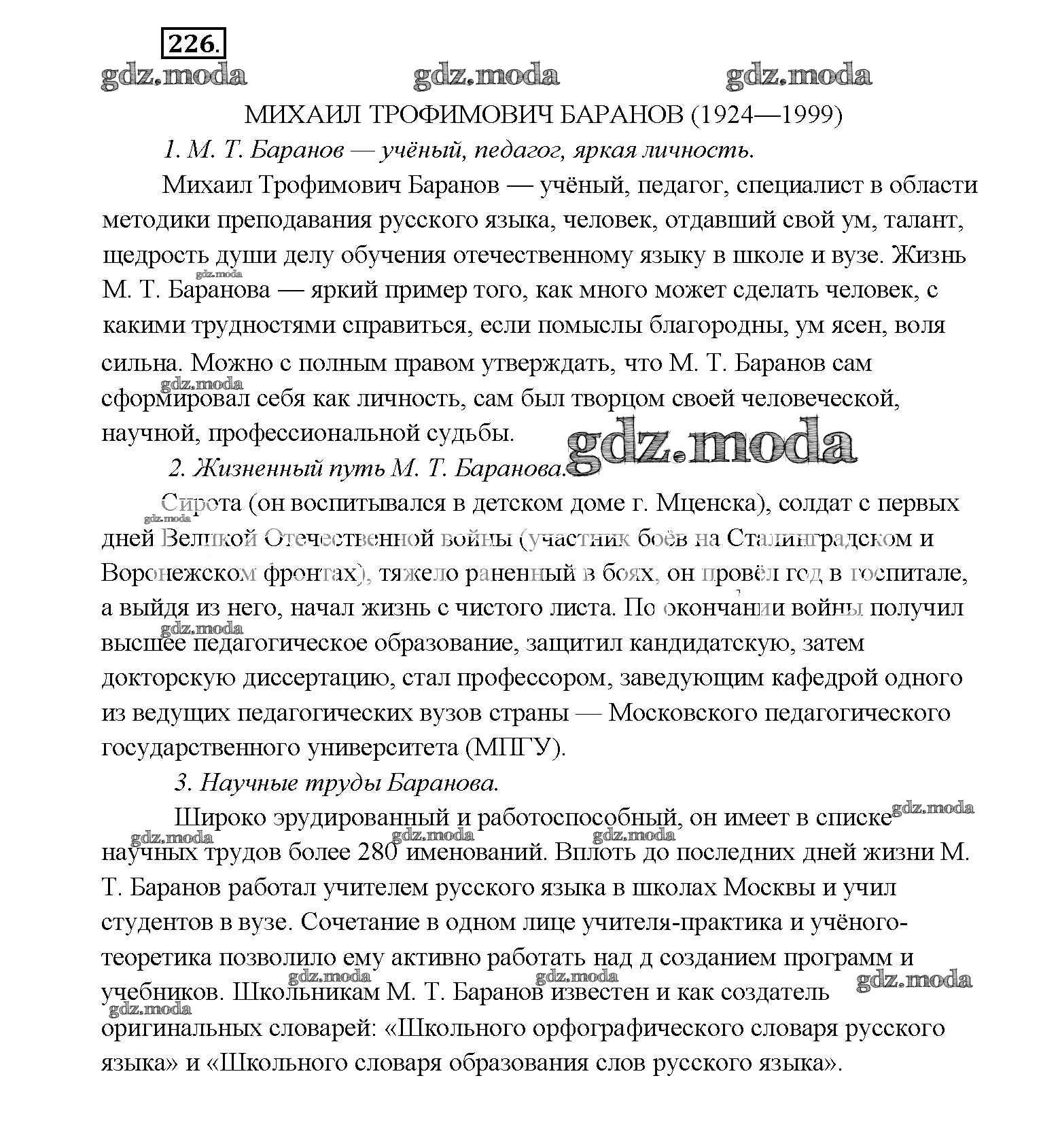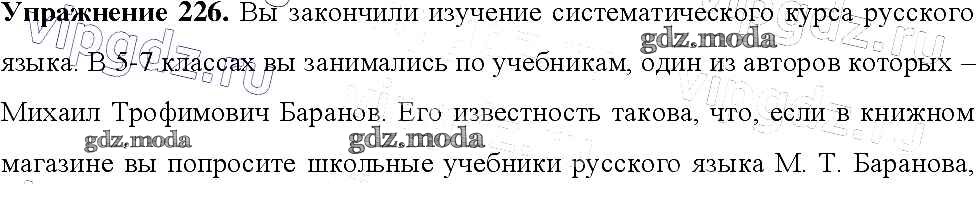 ОТВЕТ на задание № 226 Учебник по Русскому языку 9 класс Тростенцова