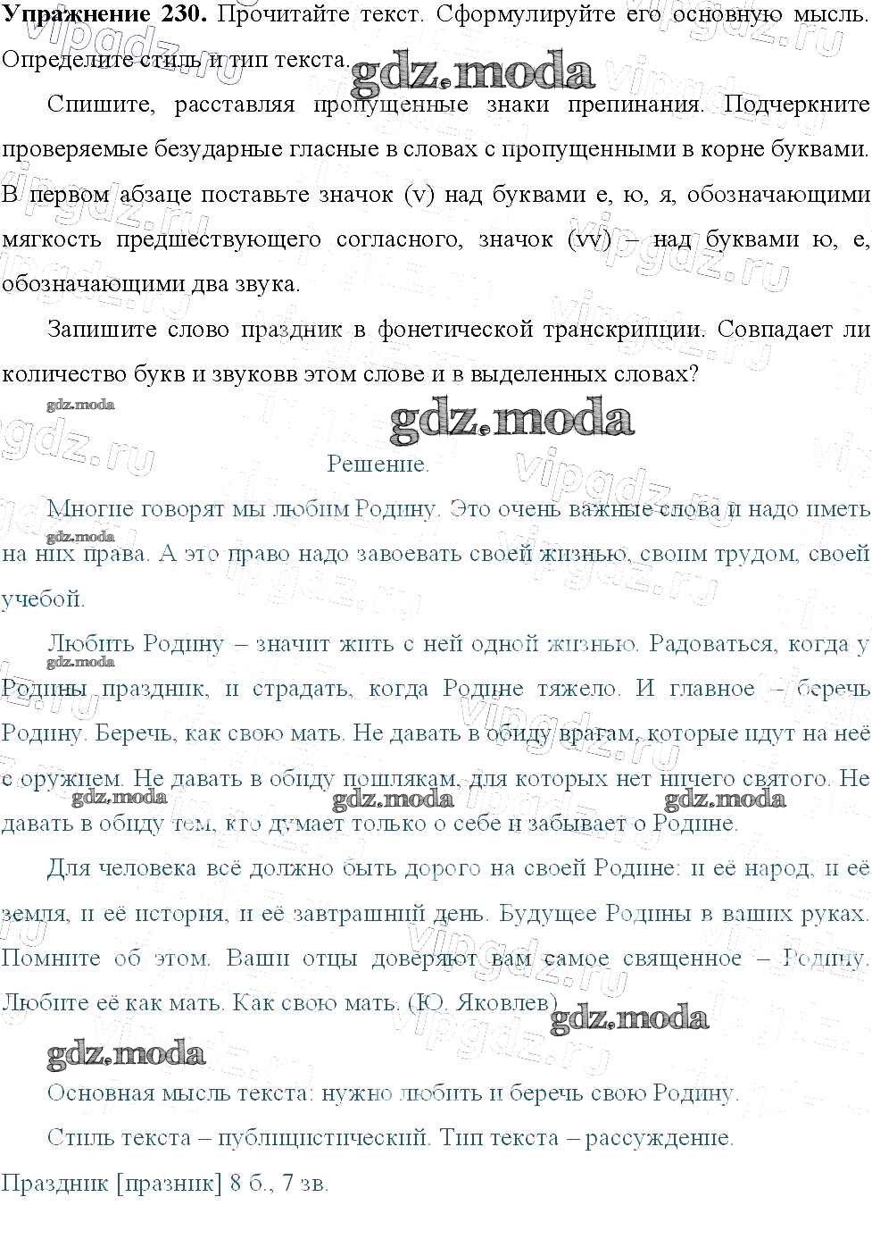 ОТВЕТ на задание № 230 Учебник по Русскому языку 9 класс Тростенцова