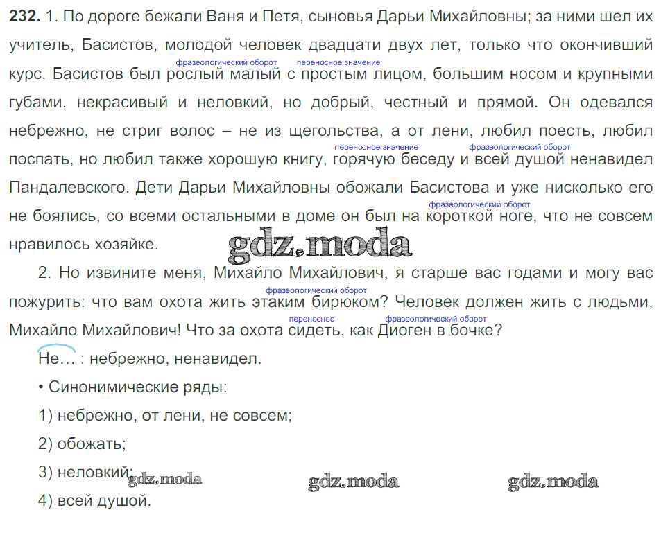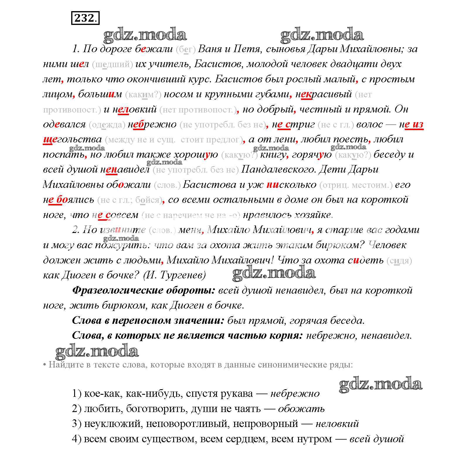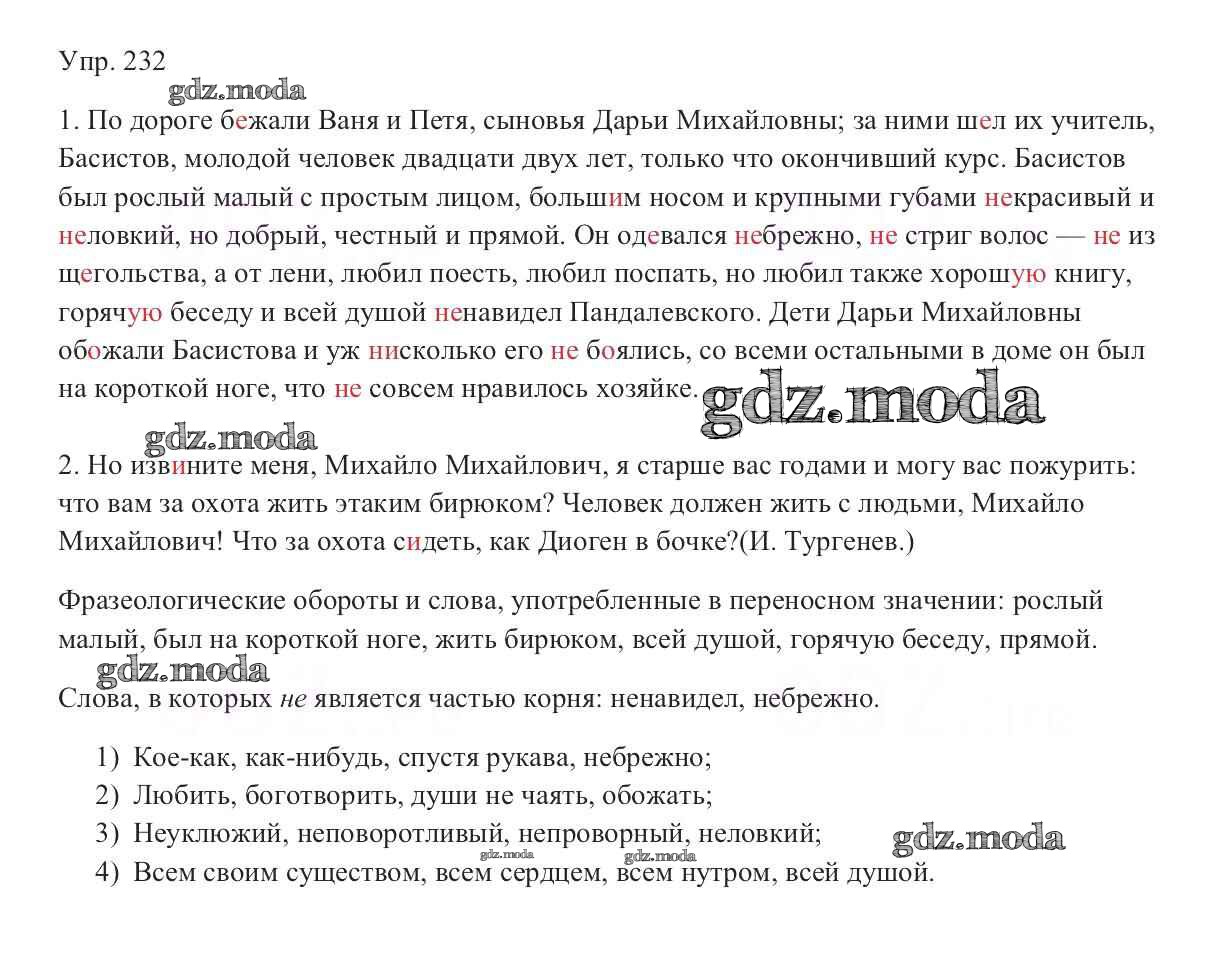 ОТВЕТ на задание № 232 Учебник по Русскому языку 9 класс Тростенцова