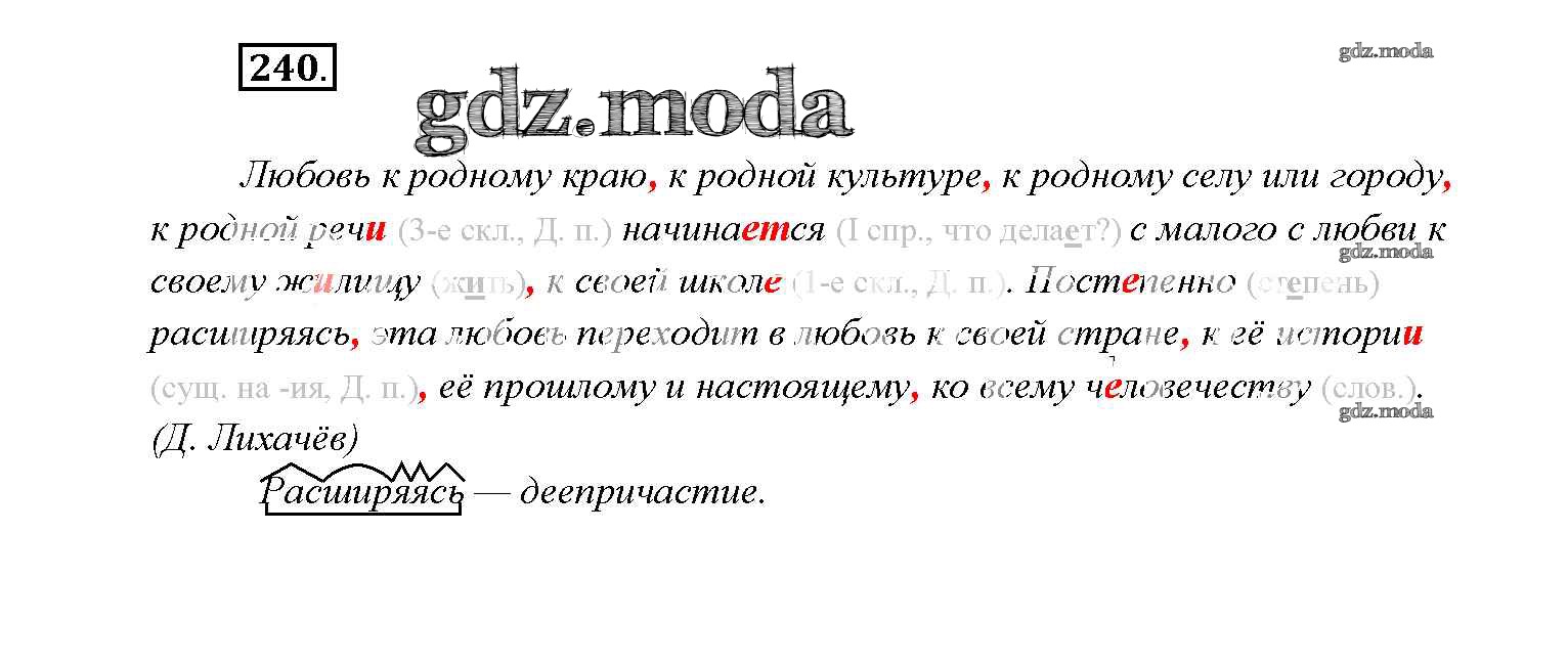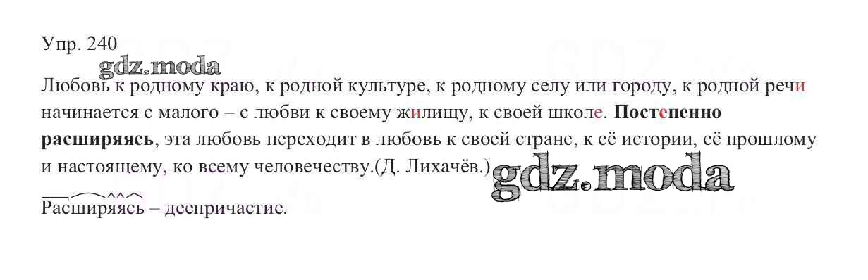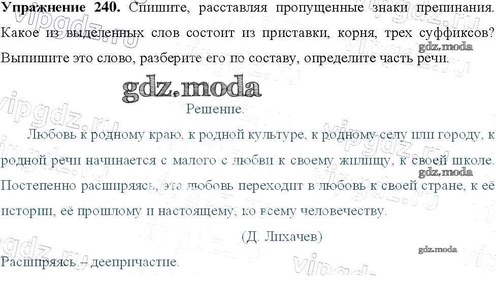 ОТВЕТ на задание № 240 Учебник по Русскому языку 9 класс Тростенцова