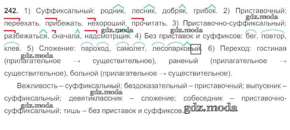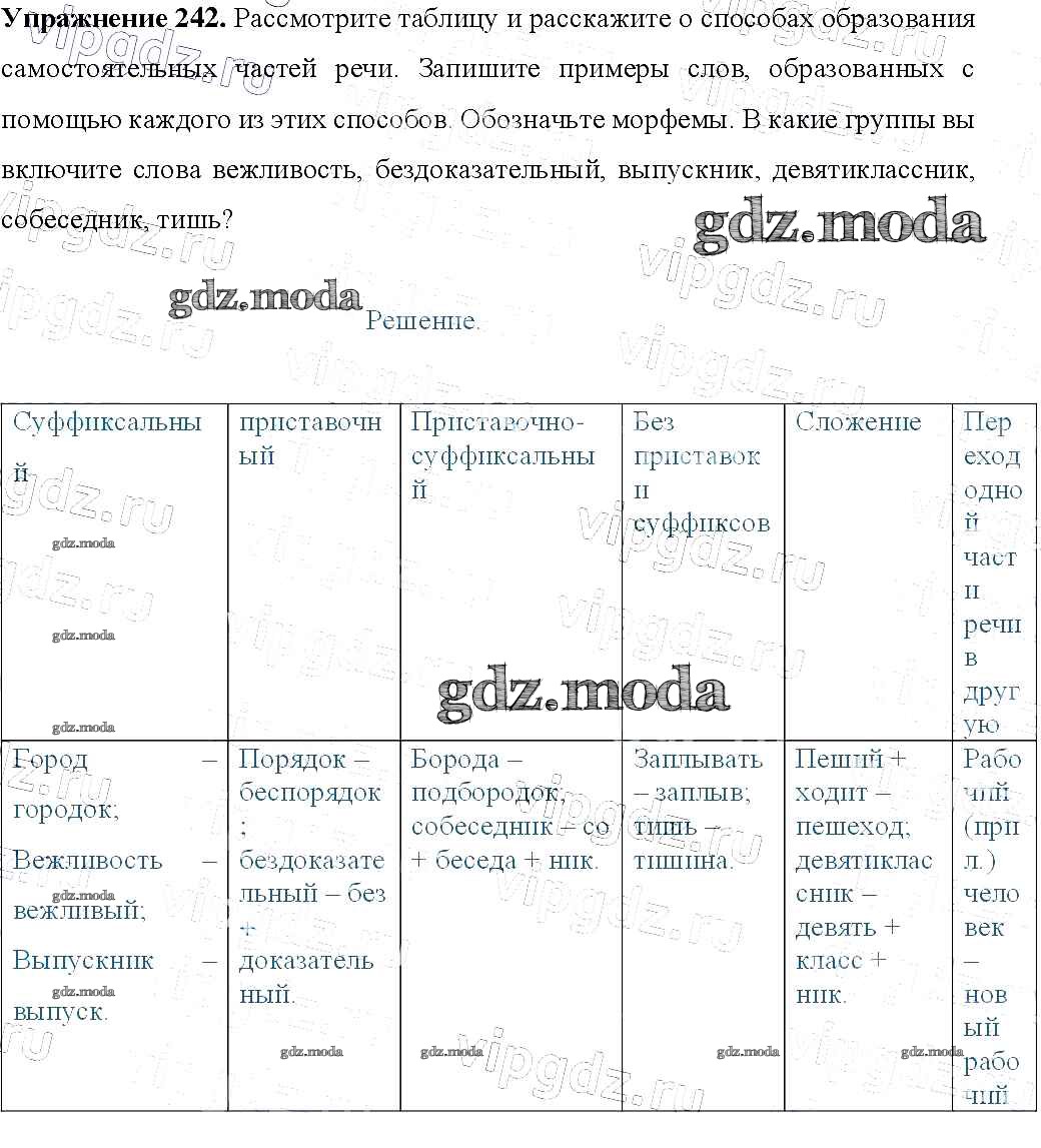 ОТВЕТ на задание № 242 Учебник по Русскому языку 9 класс Тростенцова