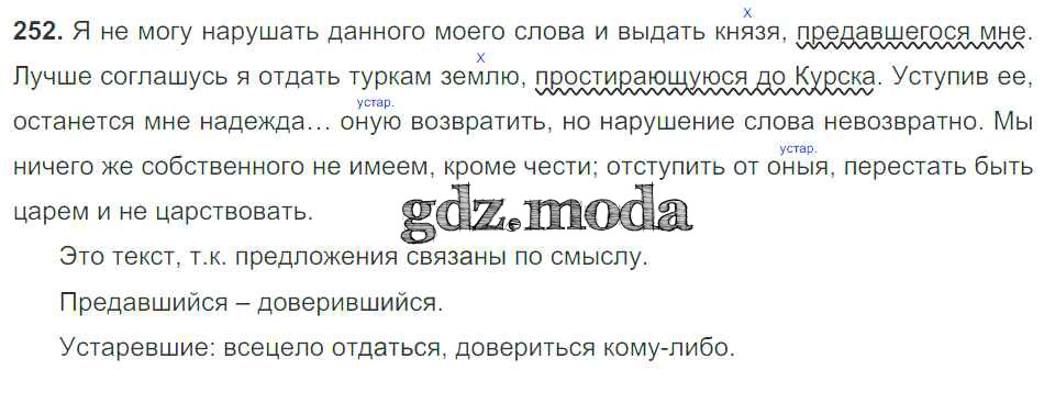 ОТВЕТ на задание № 252 Учебник по Русскому языку 9 класс Тростенцова