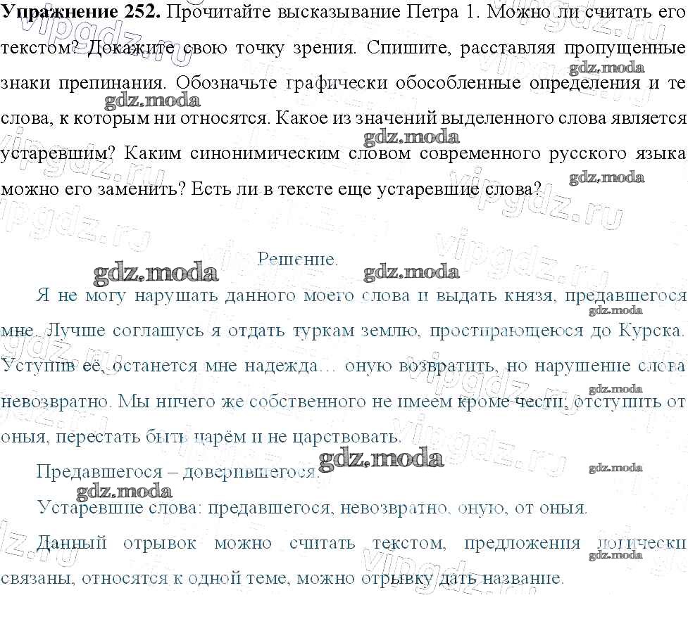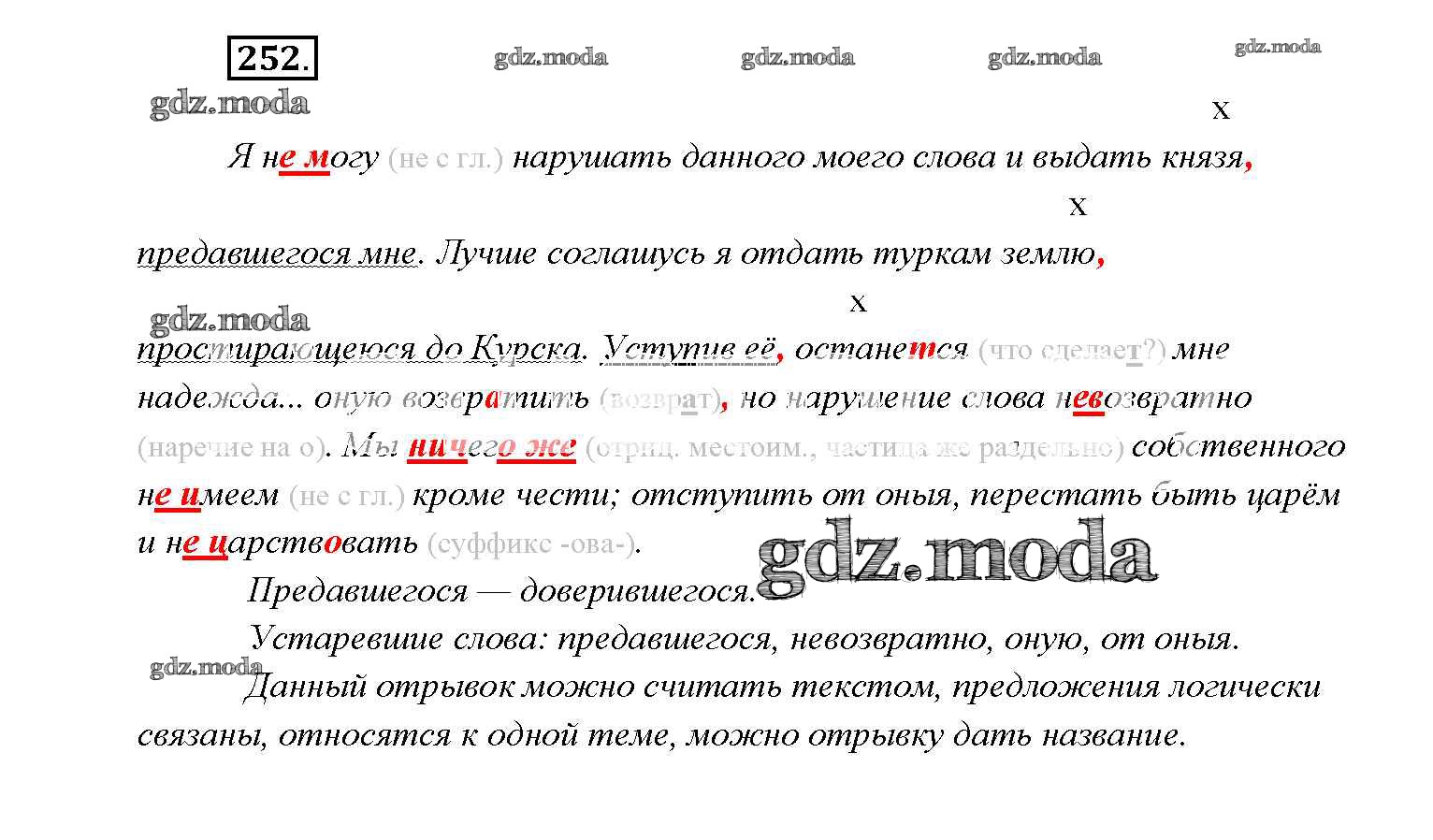 ГДЗ решение к заданию № 252 Русский язык 9 класс Тростенцова Л.А. Просвещение 2014 ФГОС бесплатно на гдз.мода!