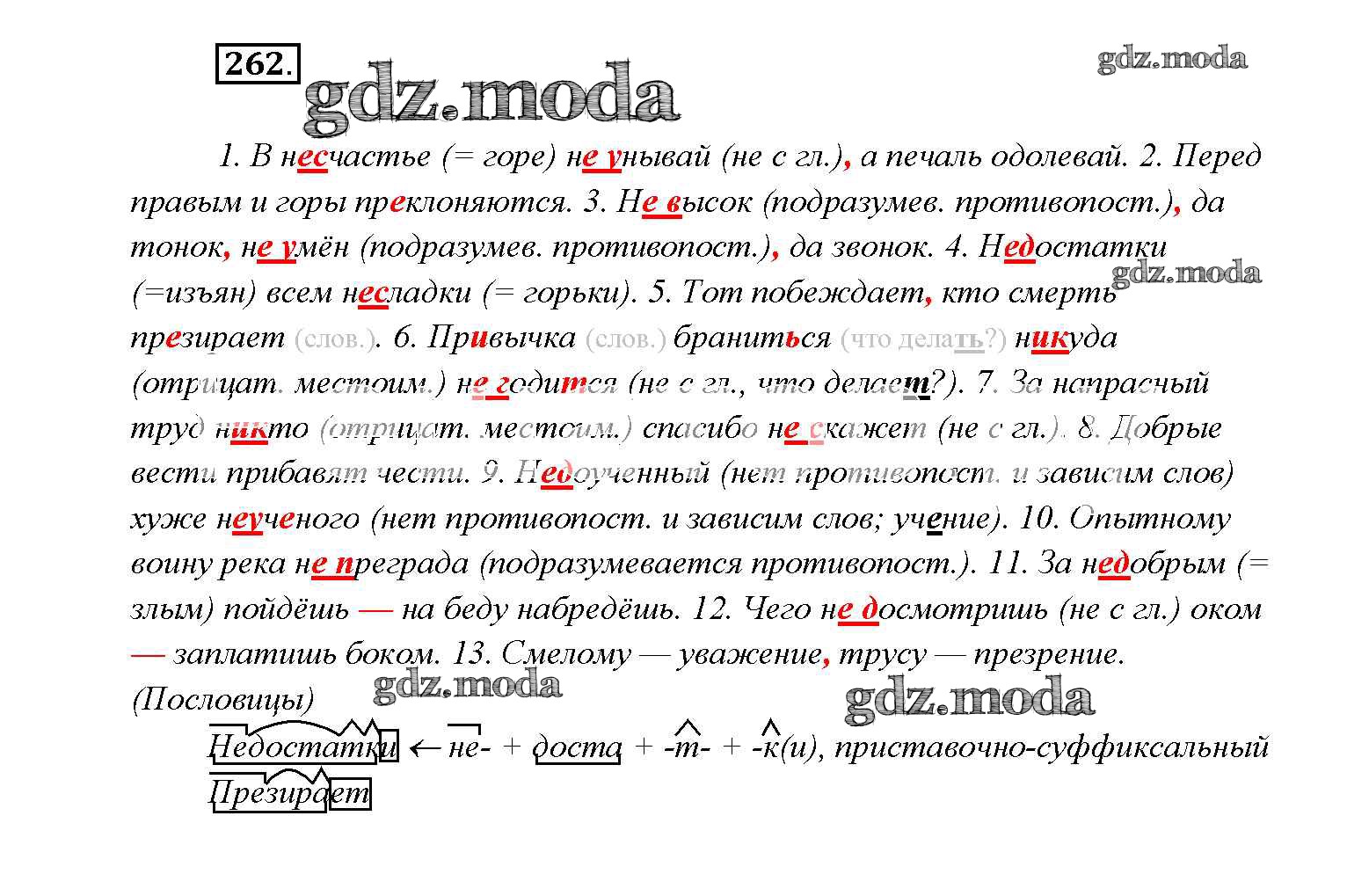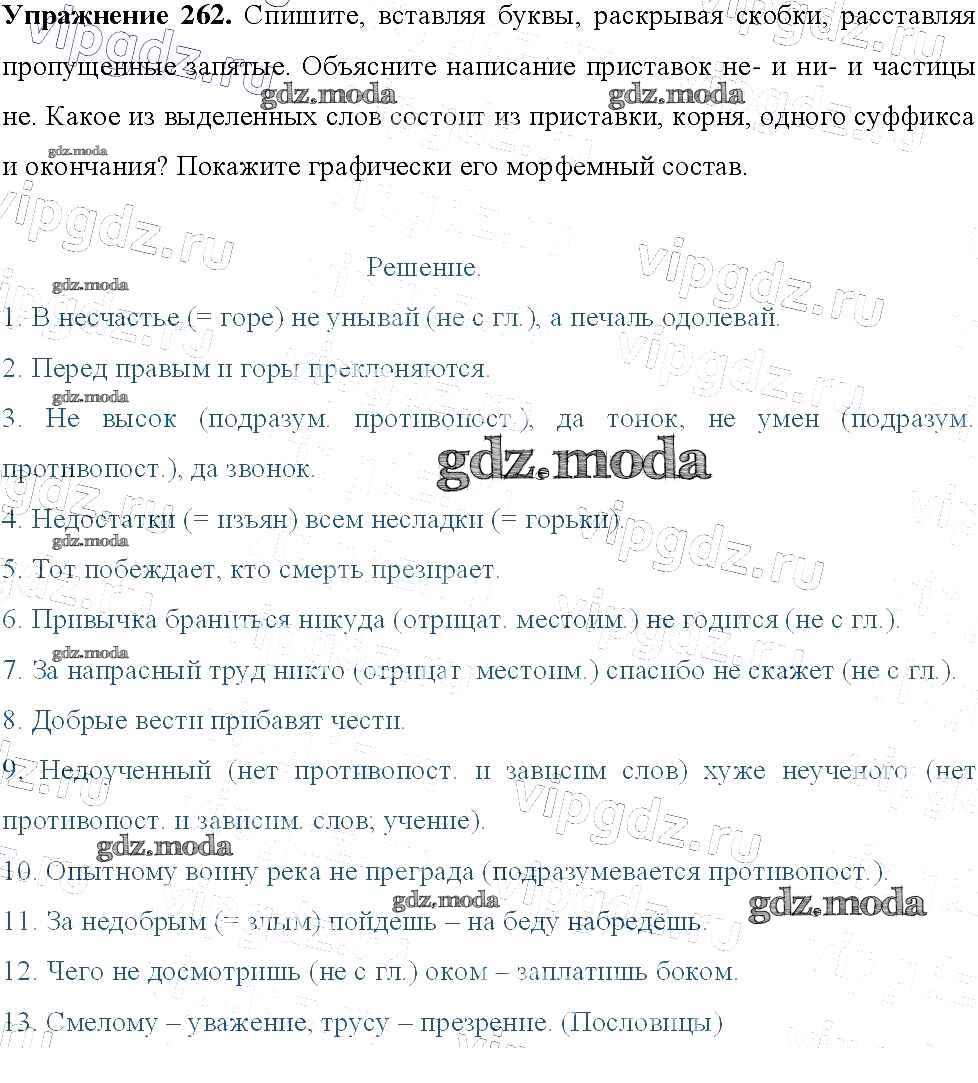 ГДЗ решение к заданию № 262 Русский язык 9 класс Тростенцова Л.А. Просвещение 2014 ФГОС бесплатно на гдз.мода!