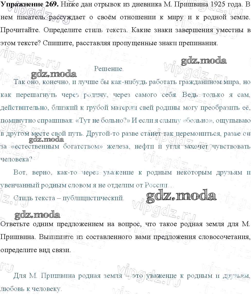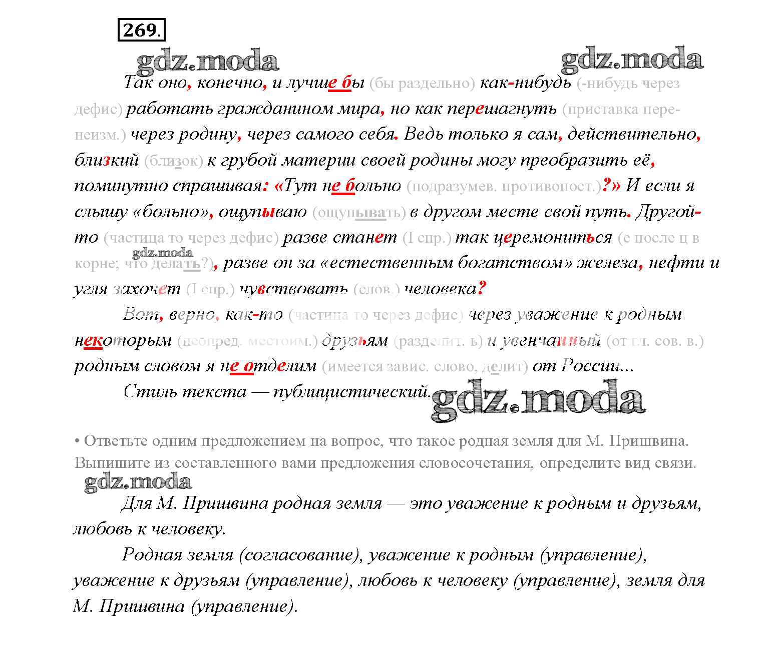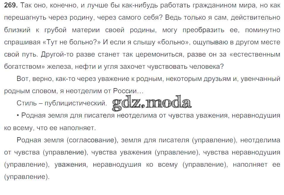 ОТВЕТ на задание № 269 Учебник по Русскому языку 9 класс Тростенцова