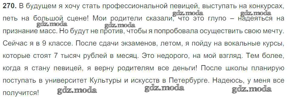 ГДЗ решение к заданию № 270 Русский язык 9 класс Тростенцова Л.А. Просвещение 2014 ФГОС бесплатно на гдз.мода!