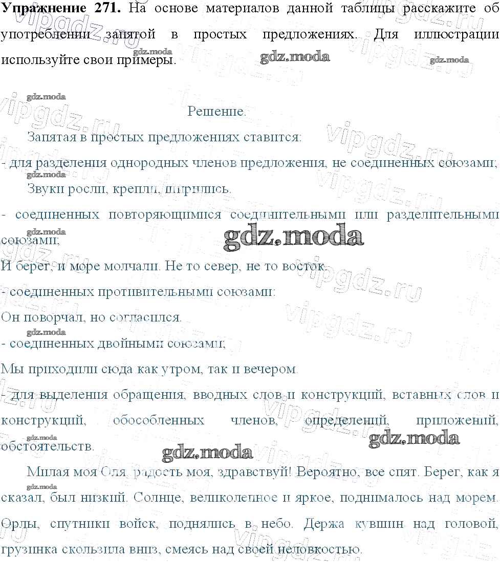 ГДЗ решение к заданию № 271 Русский язык 9 класс Тростенцова Л.А. Просвещение 2014 ФГОС бесплатно на гдз.мода!