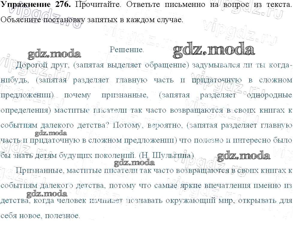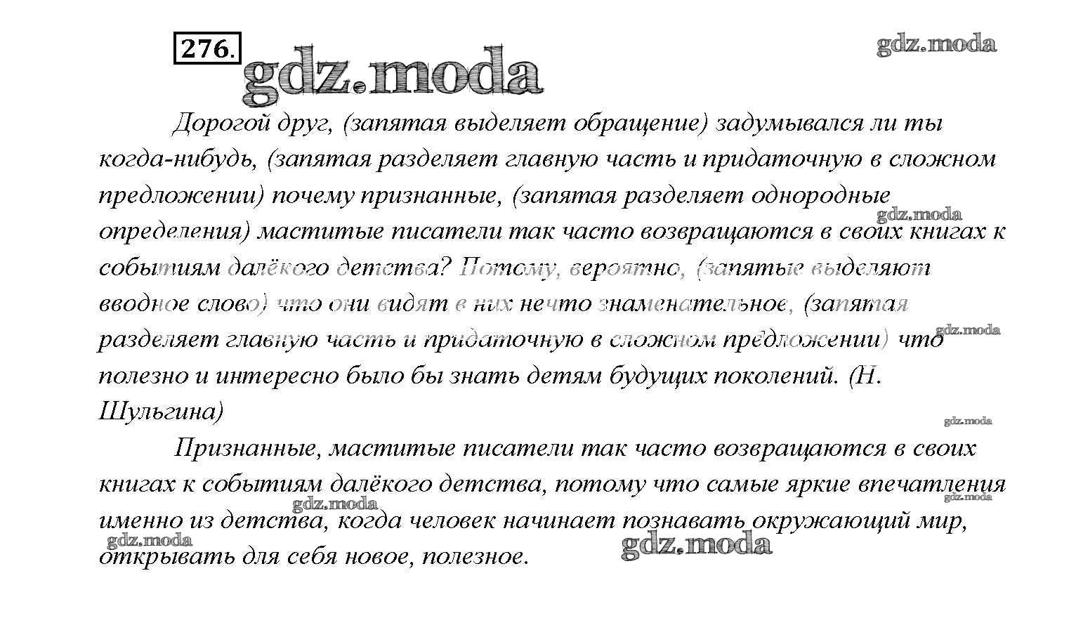 ГДЗ решение к заданию № 276 Русский язык 9 класс Тростенцова Л.А. Просвещение 2014 ФГОС бесплатно на гдз.мода!