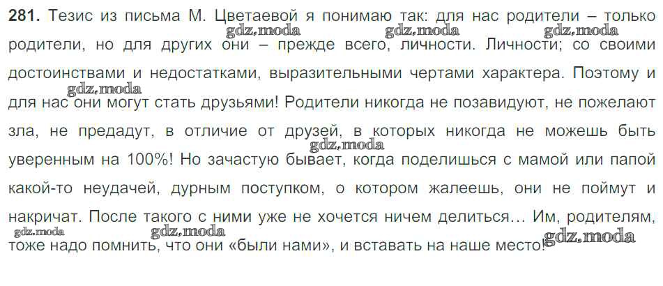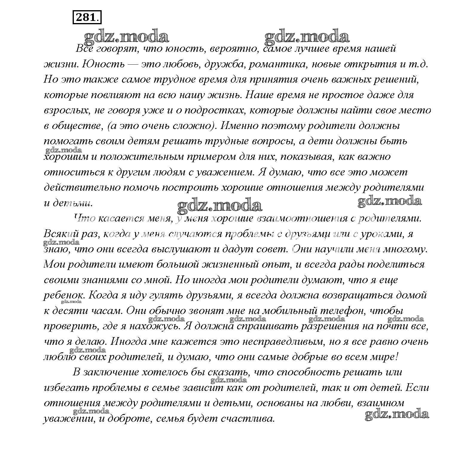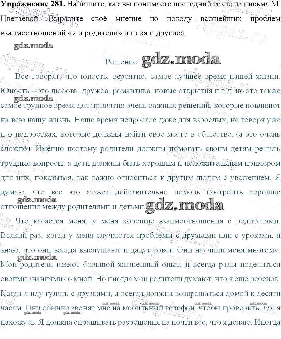ОТВЕТ на задание № 281 Учебник по Русскому языку 9 класс Тростенцова