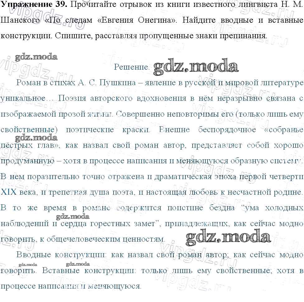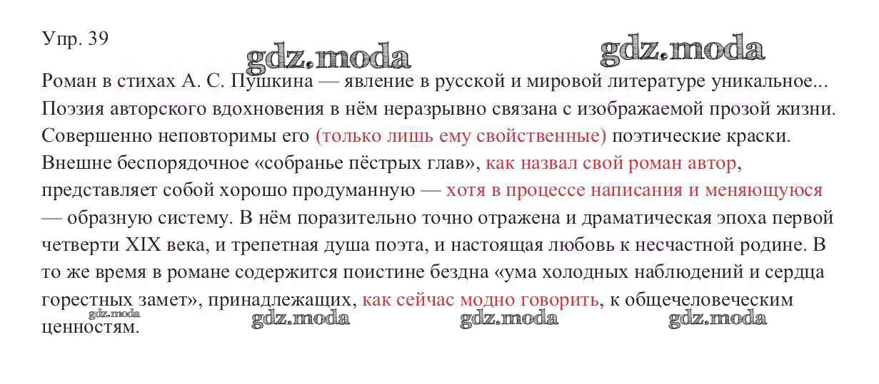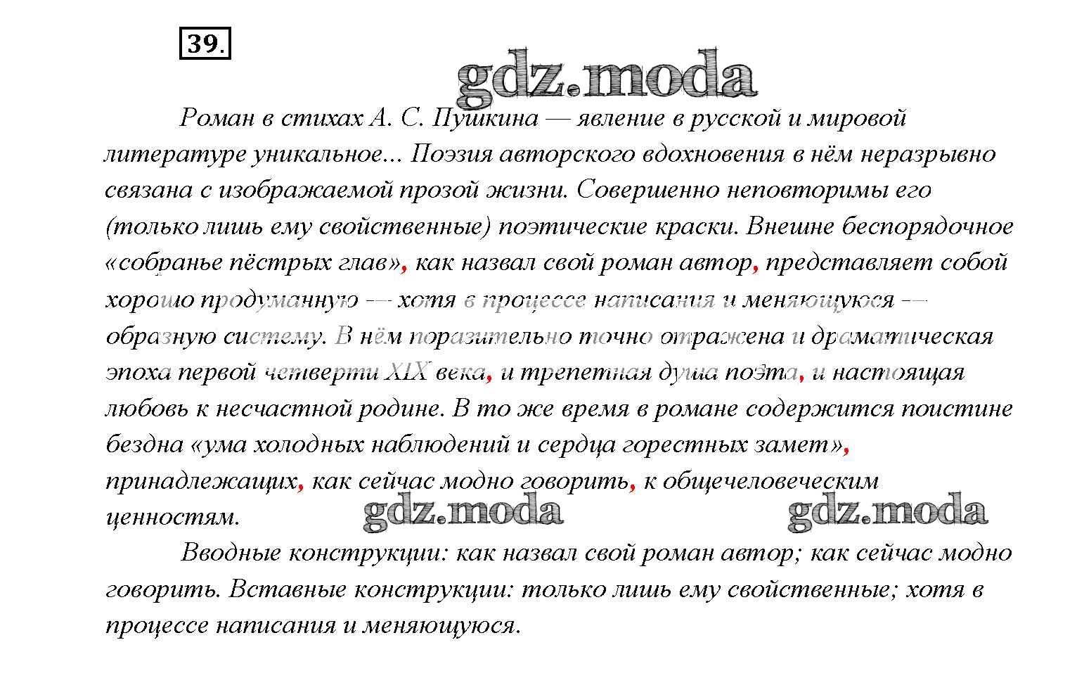 ОТВЕТ на задание № 39 Учебник по Русскому языку 9 класс Тростенцова