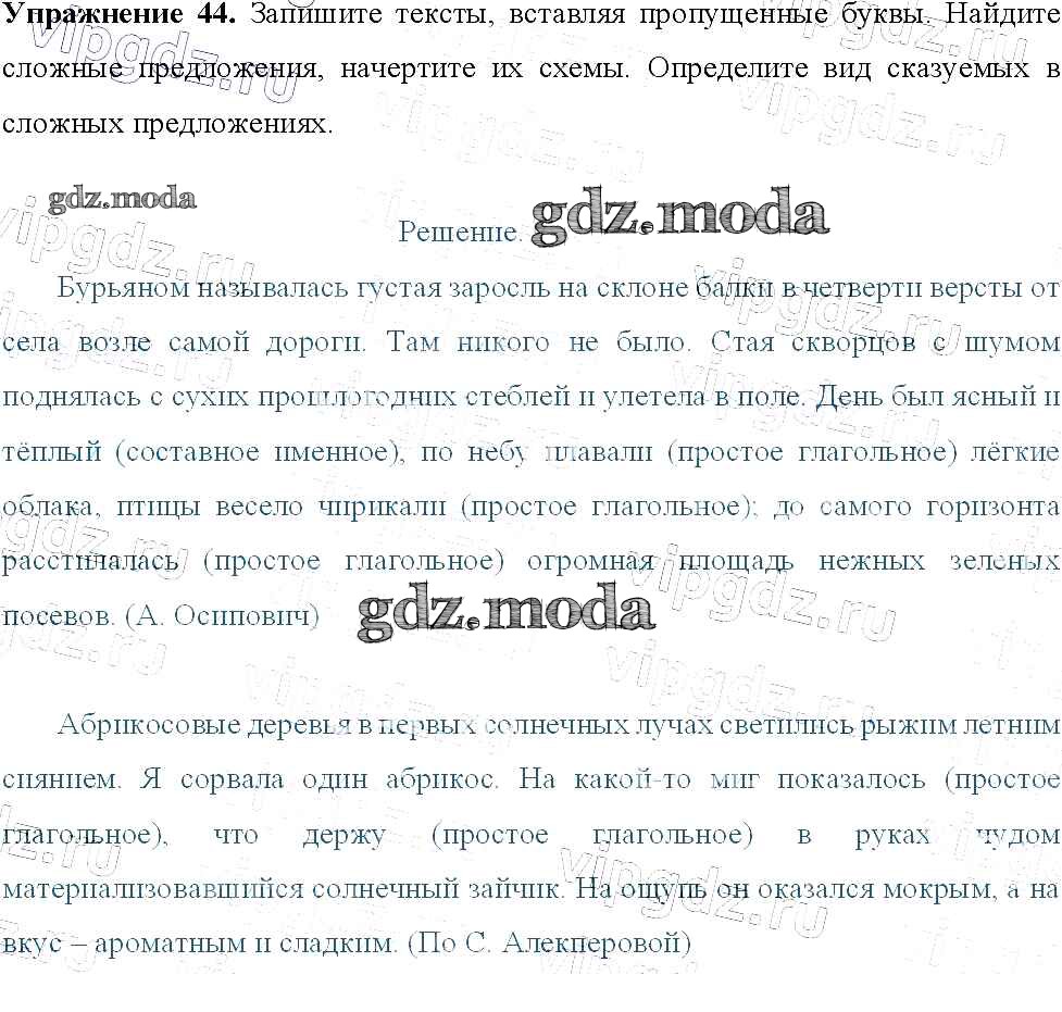 ОТВЕТ на задание № 44 Учебник по Русскому языку 9 класс Тростенцова