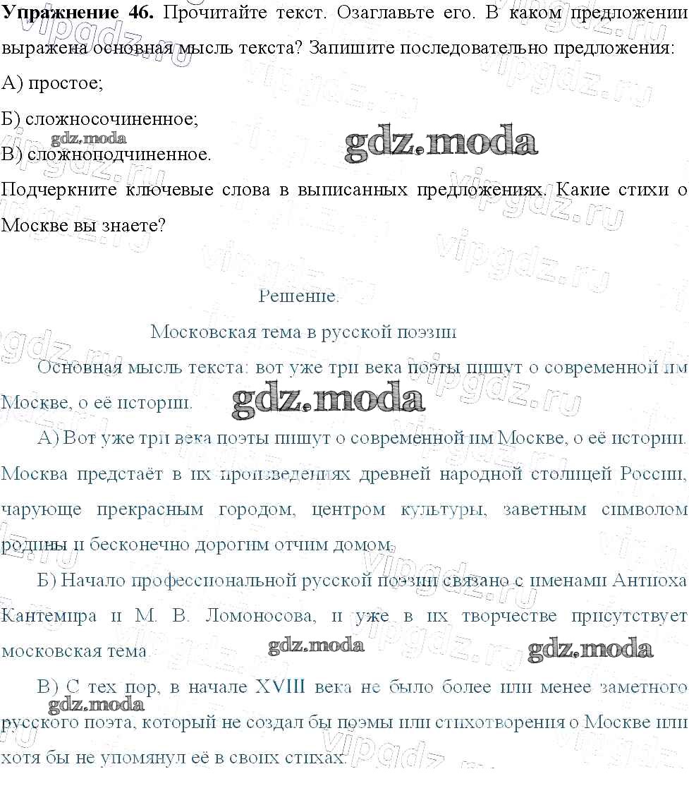 ОТВЕТ на задание № 46 Учебник по Русскому языку 9 класс Тростенцова