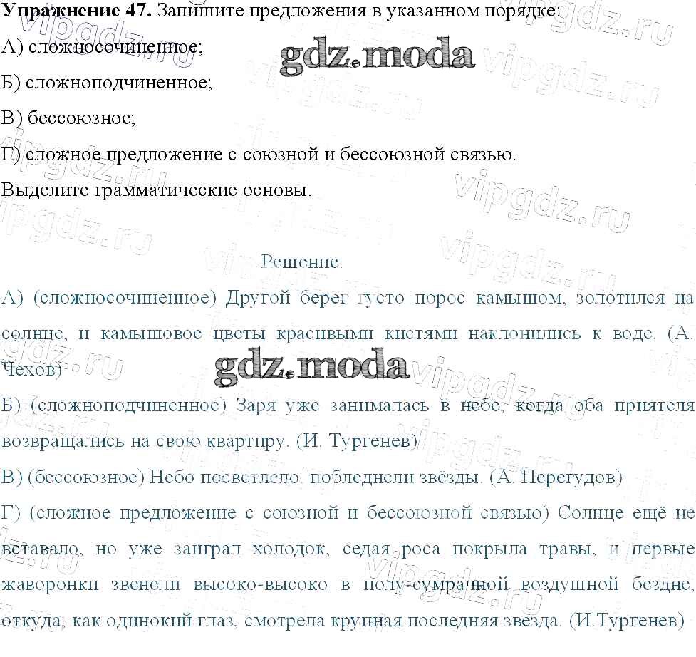 ОТВЕТ на задание № 47 Учебник по Русскому языку 9 класс Тростенцова