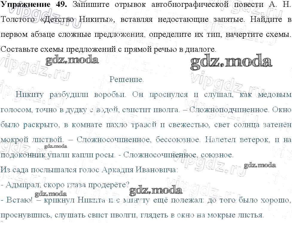ОТВЕТ на задание № 49 Учебник по Русскому языку 9 класс Тростенцова