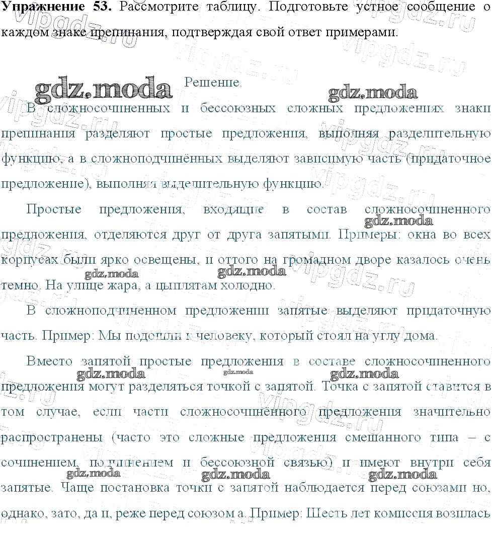 ОТВЕТ на задание № 53 Учебник по Русскому языку 9 класс Тростенцова