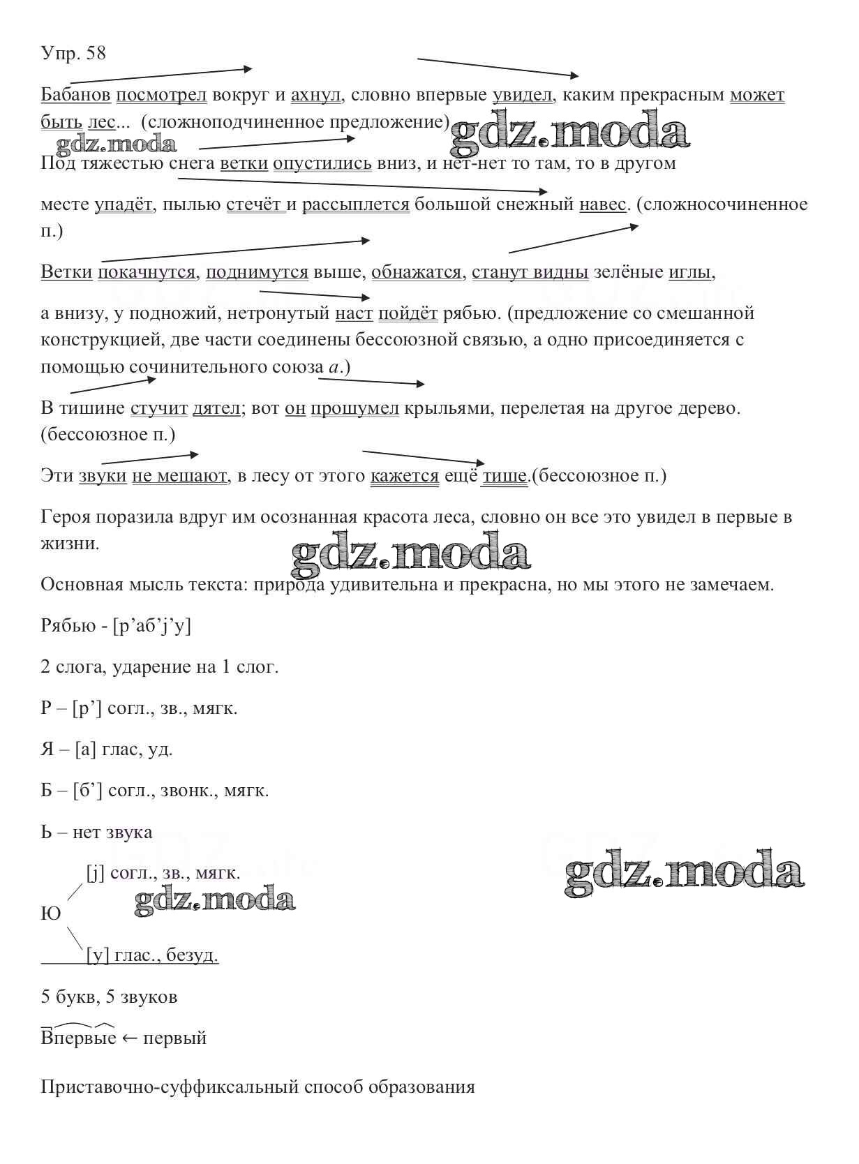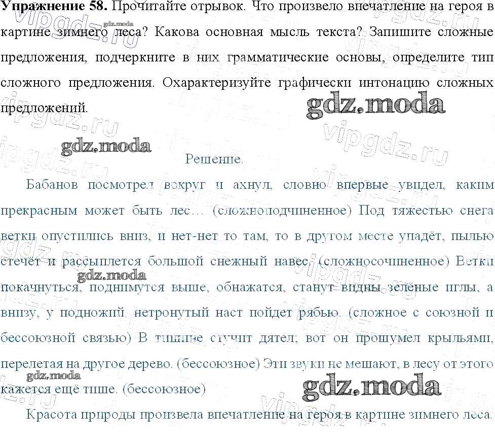 ОТВЕТ на задание № 58 Учебник по Русскому языку 9 класс Тростенцова
