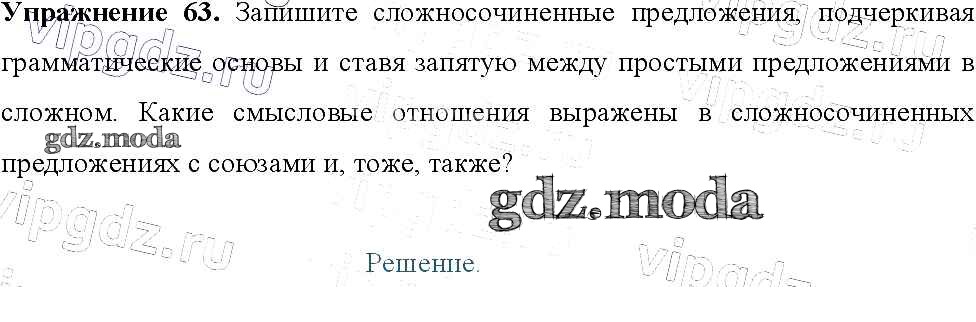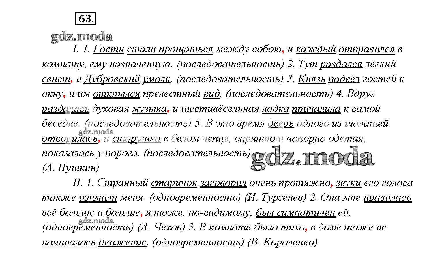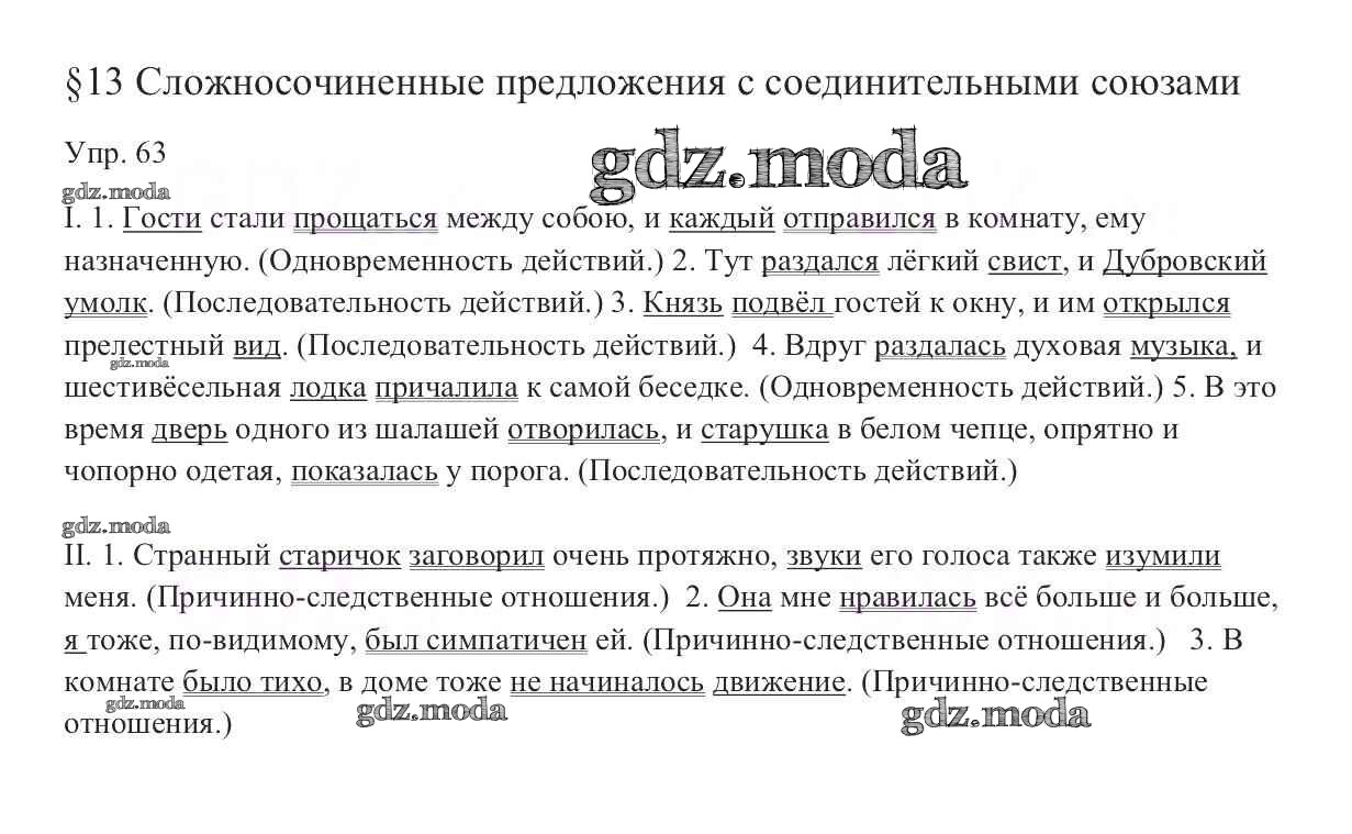 ОТВЕТ на задание № 63 Учебник по Русскому языку 9 класс Тростенцова