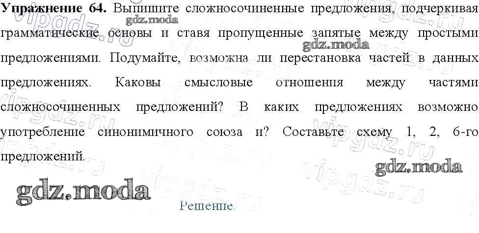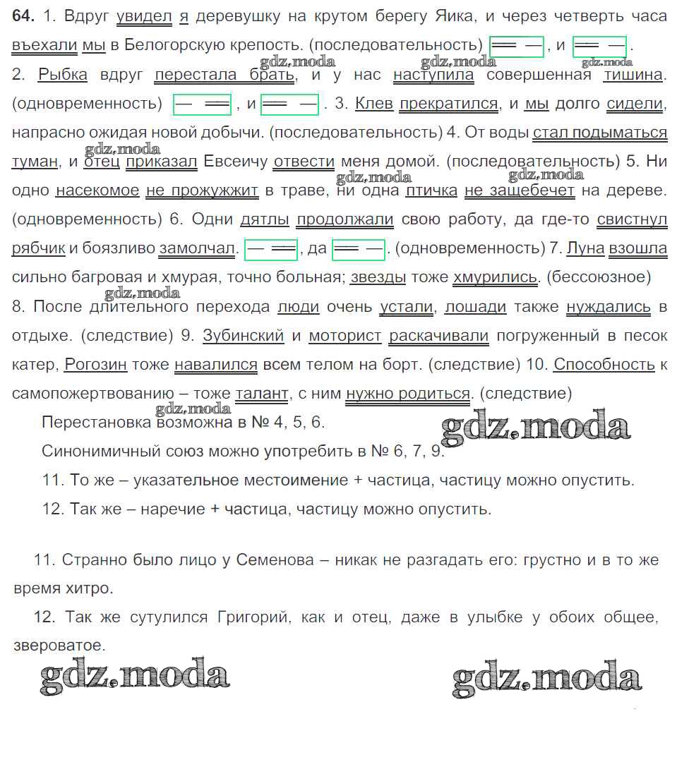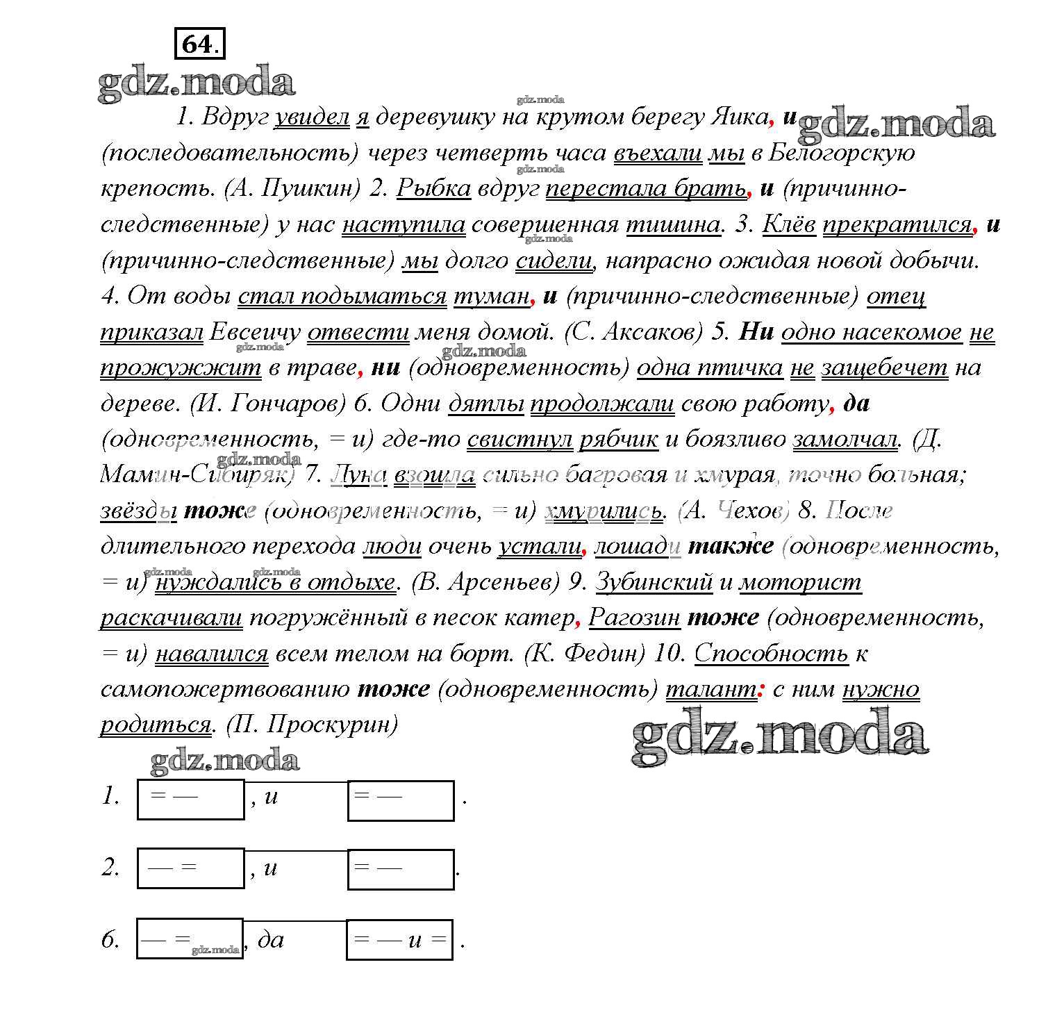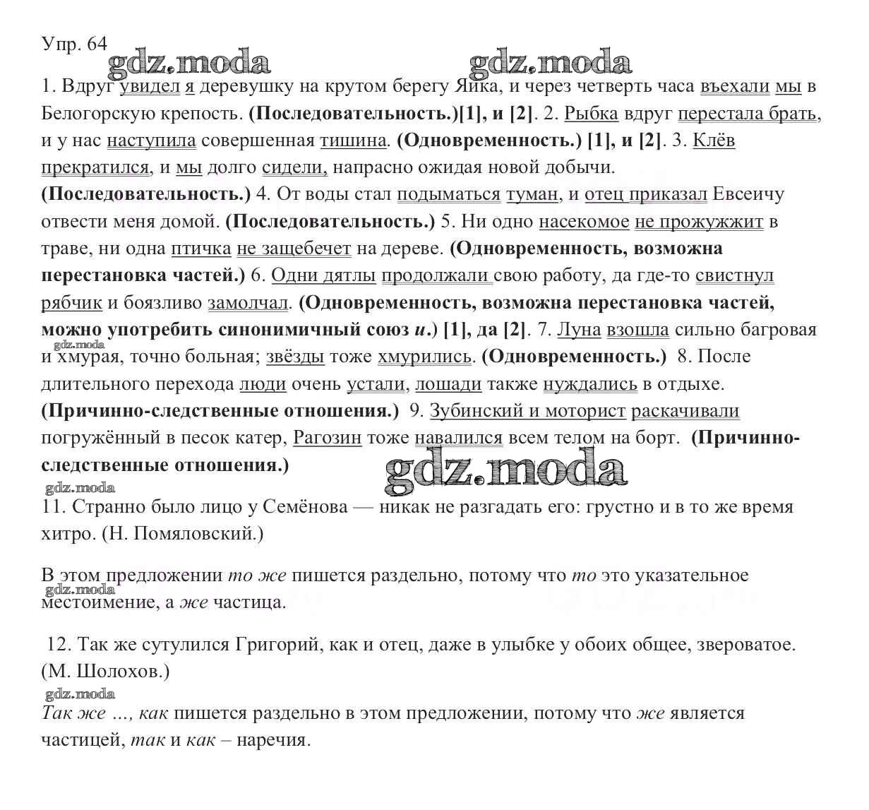 ОТВЕТ на задание № 64 Учебник по Русскому языку 9 класс Тростенцова