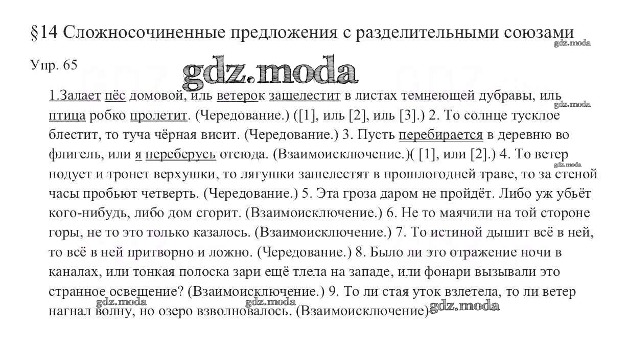 ОТВЕТ на задание № 65 Учебник по Русскому языку 9 класс Тростенцова