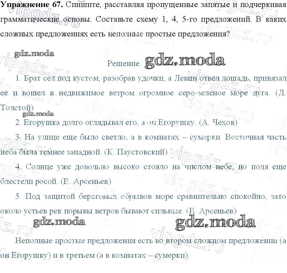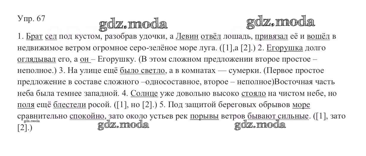 ОТВЕТ на задание № 67 Учебник по Русскому языку 9 класс Тростенцова