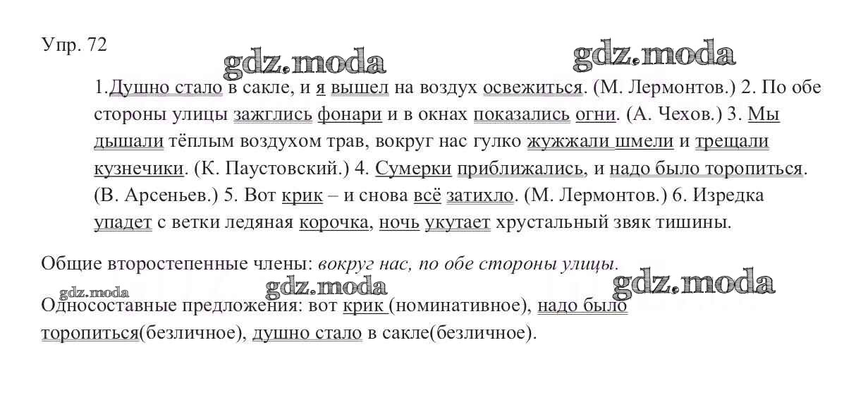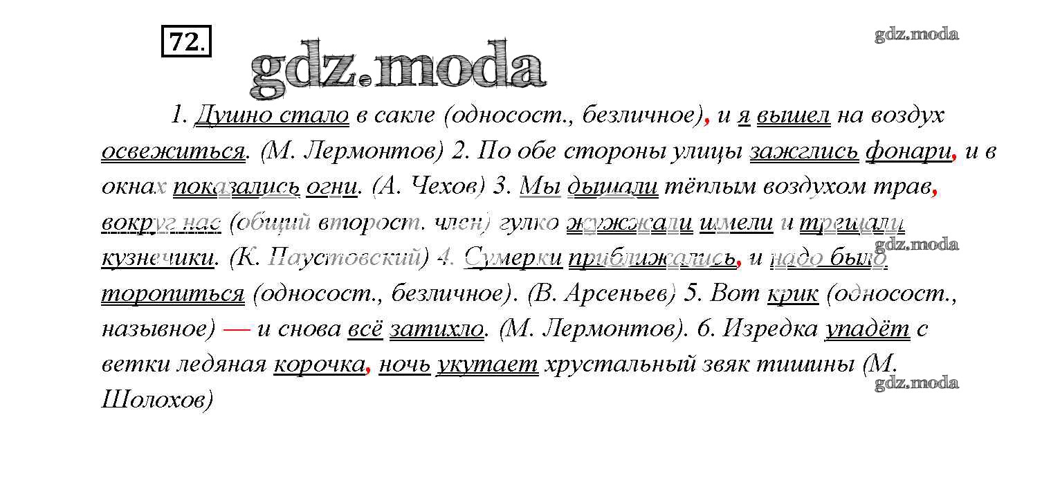 ОТВЕТ на задание № 72 Учебник по Русскому языку 9 класс Тростенцова