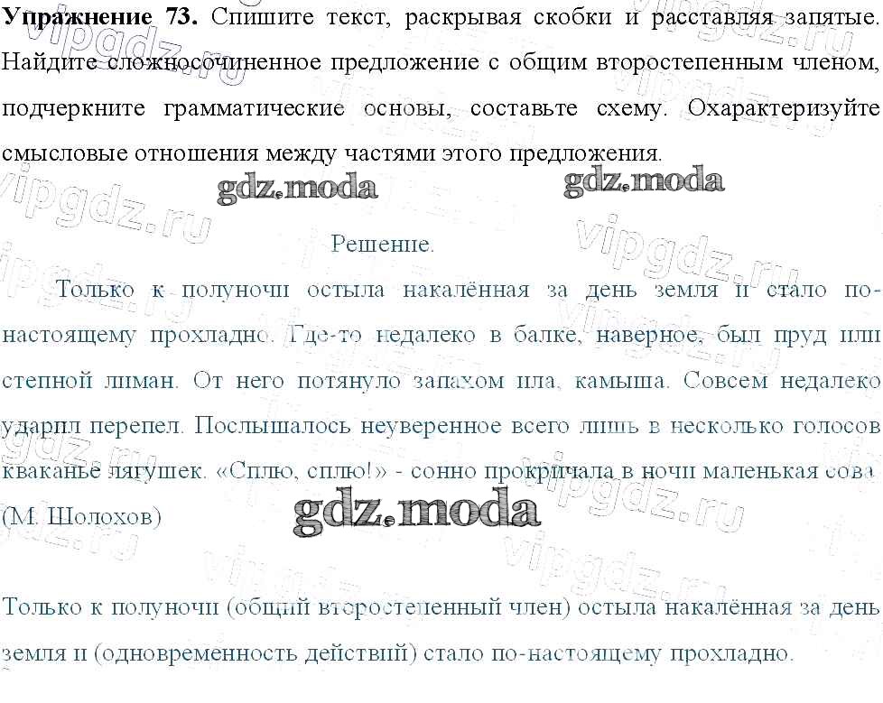 ОТВЕТ на задание № 73 Учебник по Русскому языку 9 класс Тростенцова