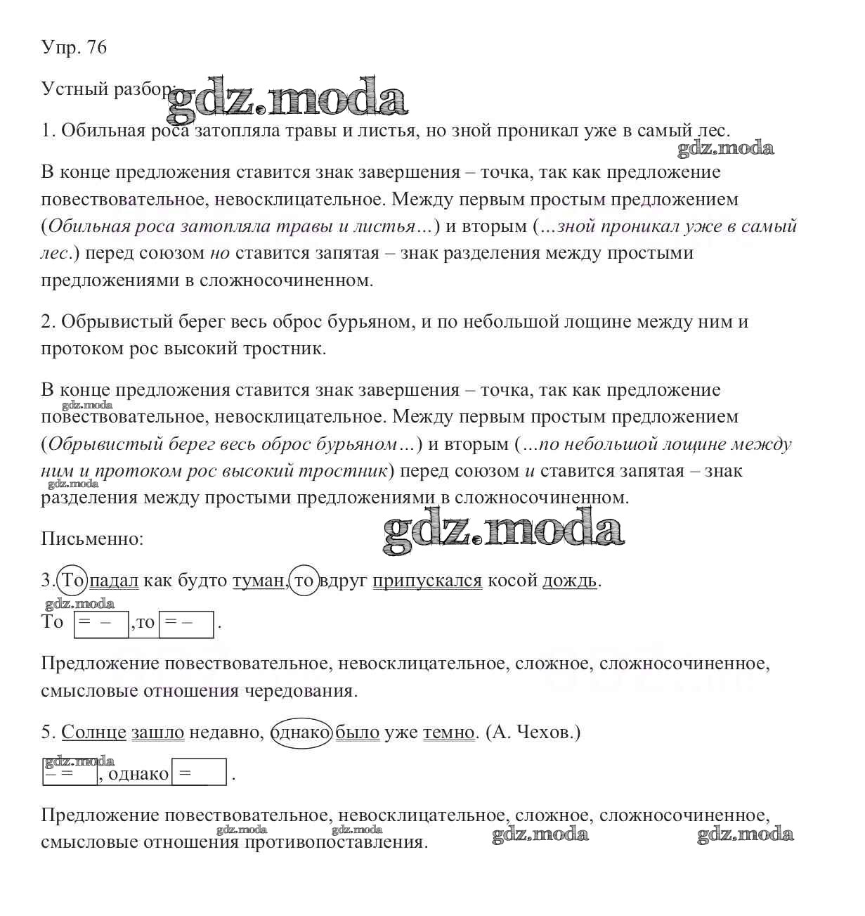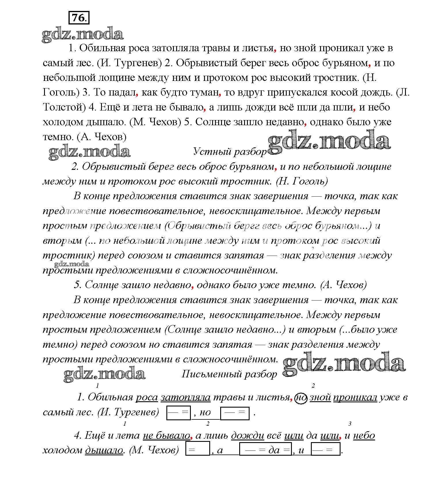 ОТВЕТ на задание № 76 Учебник по Русскому языку 9 класс Тростенцова