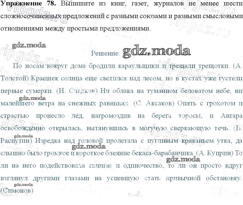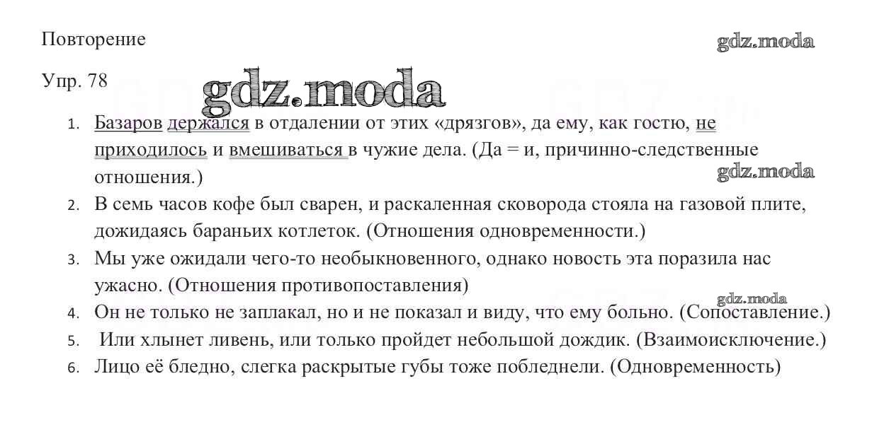 ОТВЕТ на задание № 78 Учебник по Русскому языку 9 класс Тростенцова