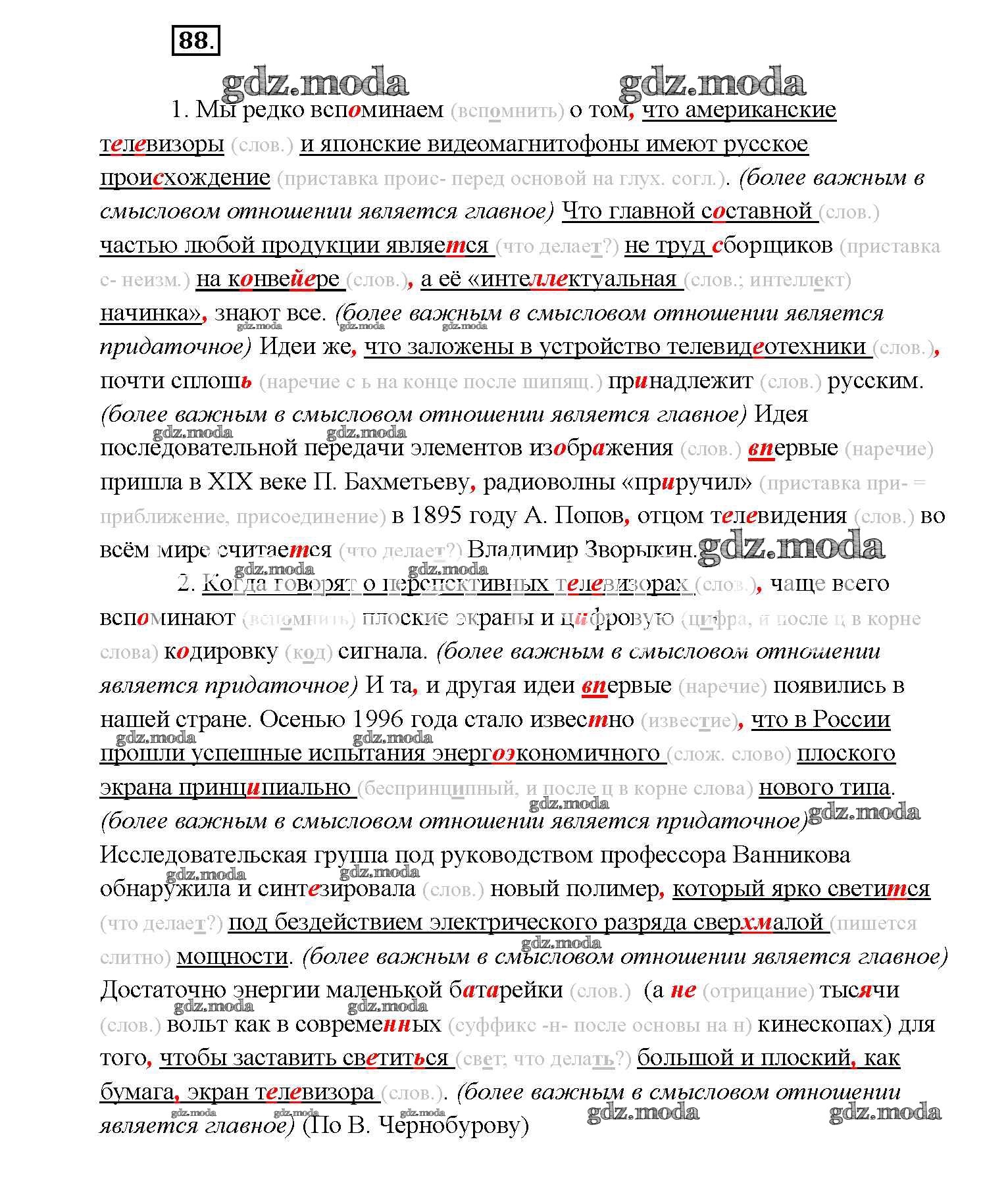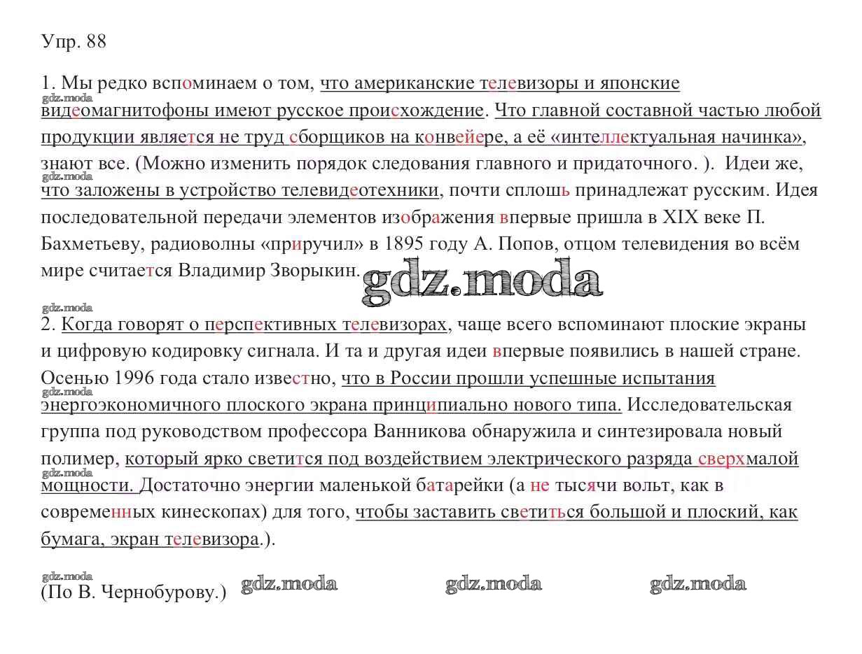 ОТВЕТ на задание № 88 Учебник по Русскому языку 9 класс Тростенцова