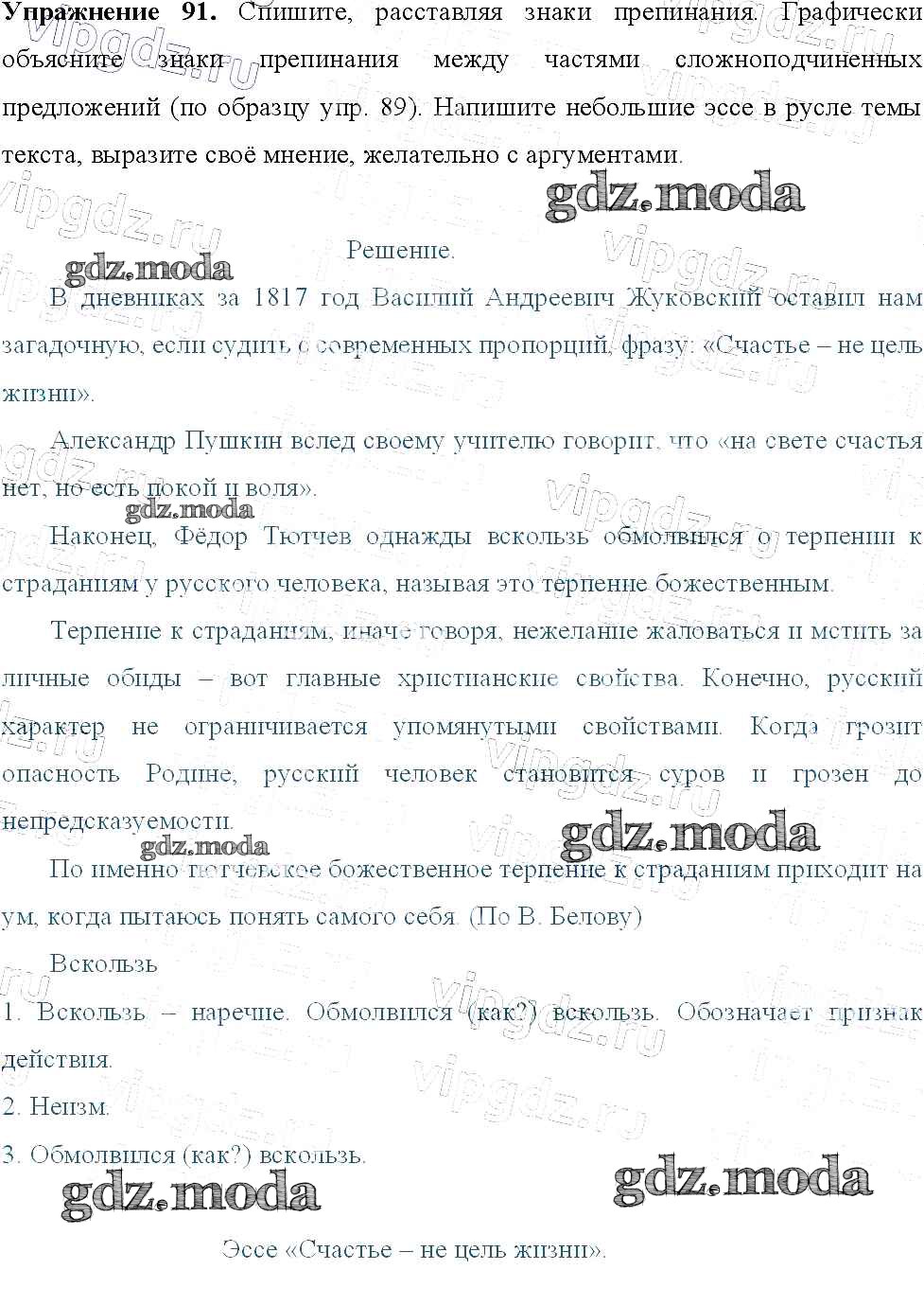 ОТВЕТ на задание № 91 Учебник по Русскому языку 9 класс Тростенцова