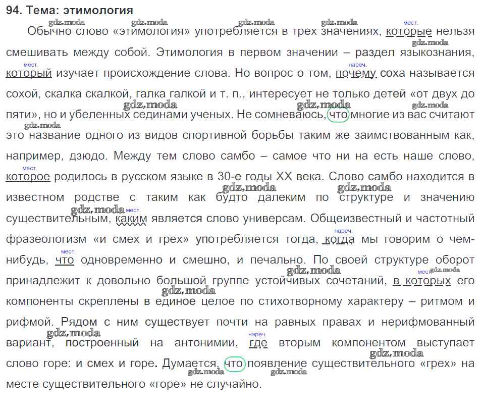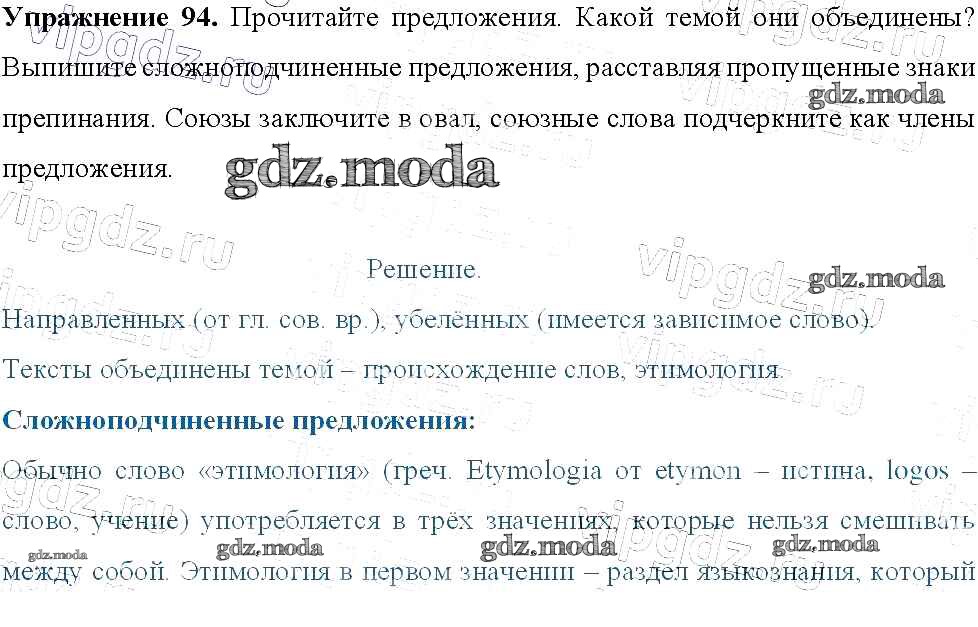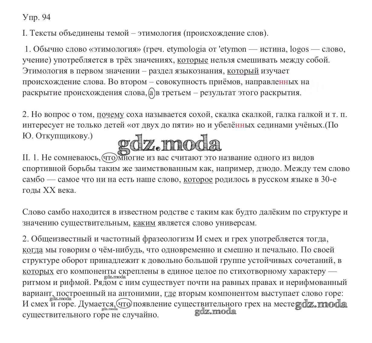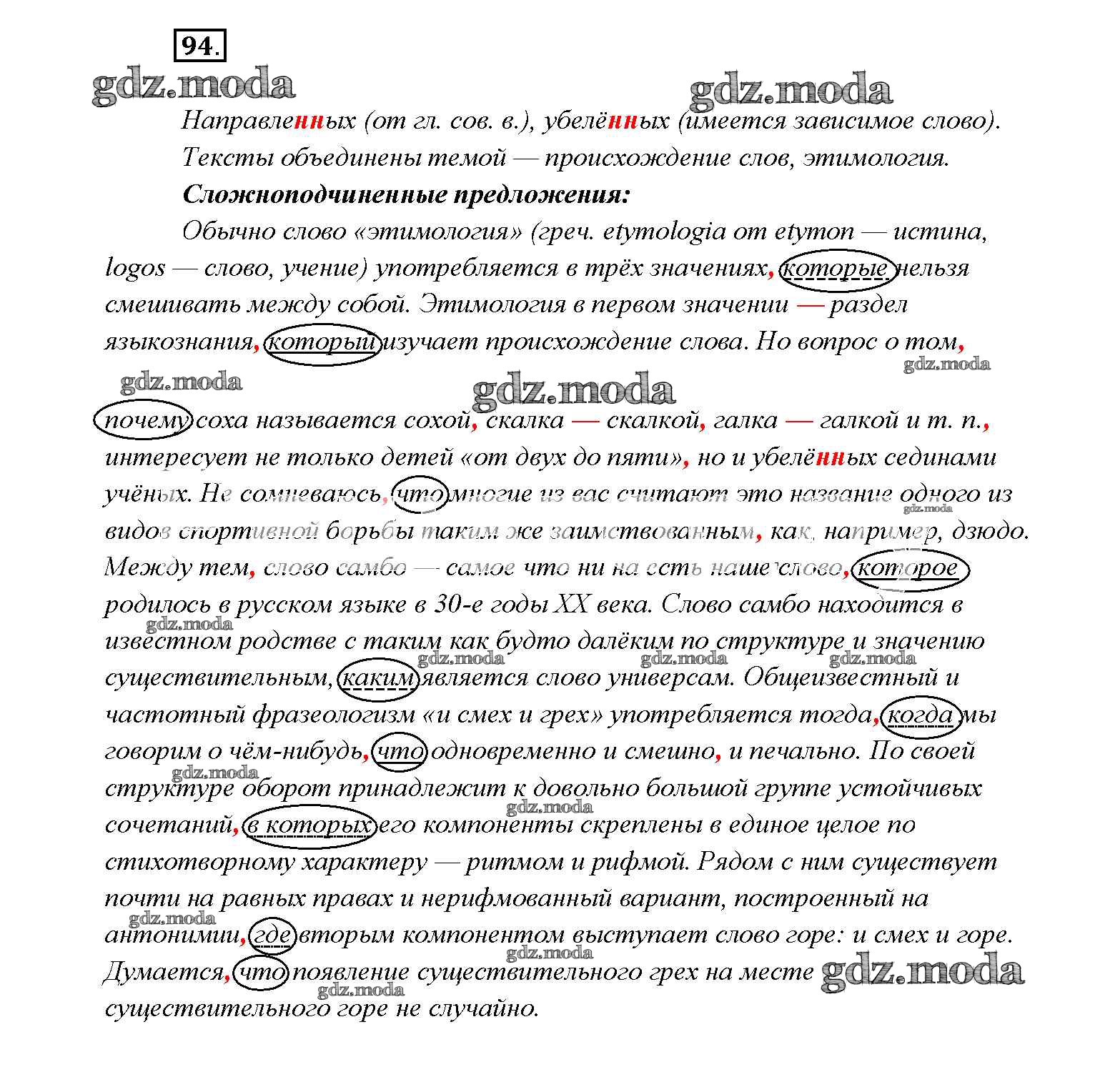 ОТВЕТ на задание № 94 Учебник по Русскому языку 9 класс Тростенцова