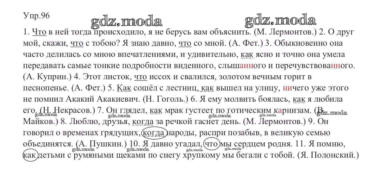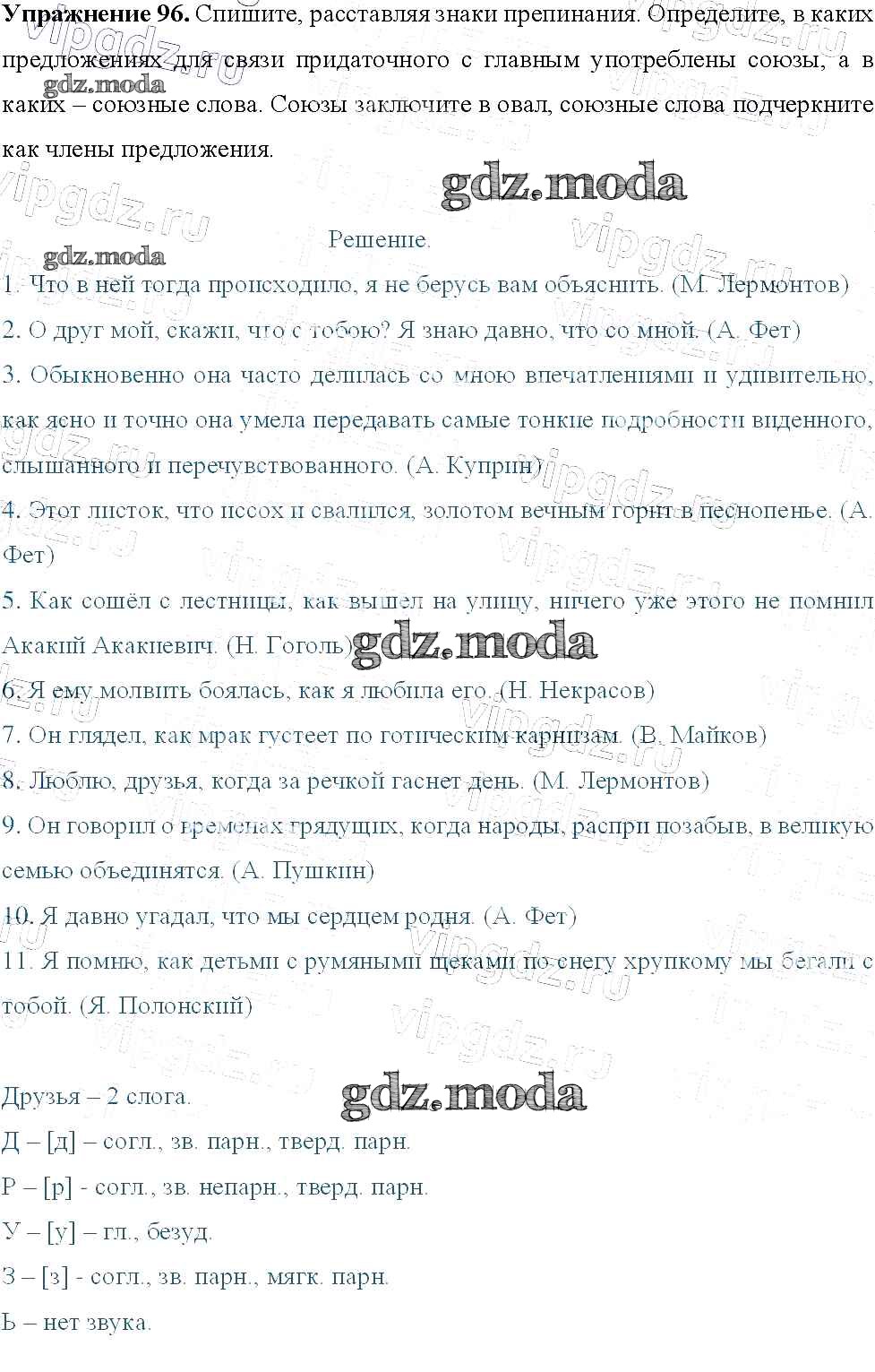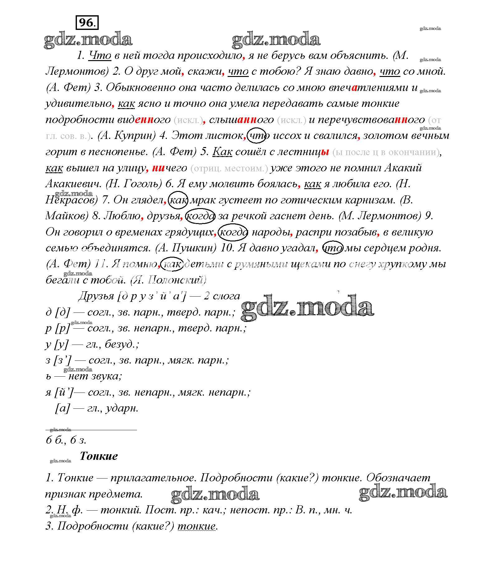 ОТВЕТ на задание № 96 Учебник по Русскому языку 9 класс Тростенцова
