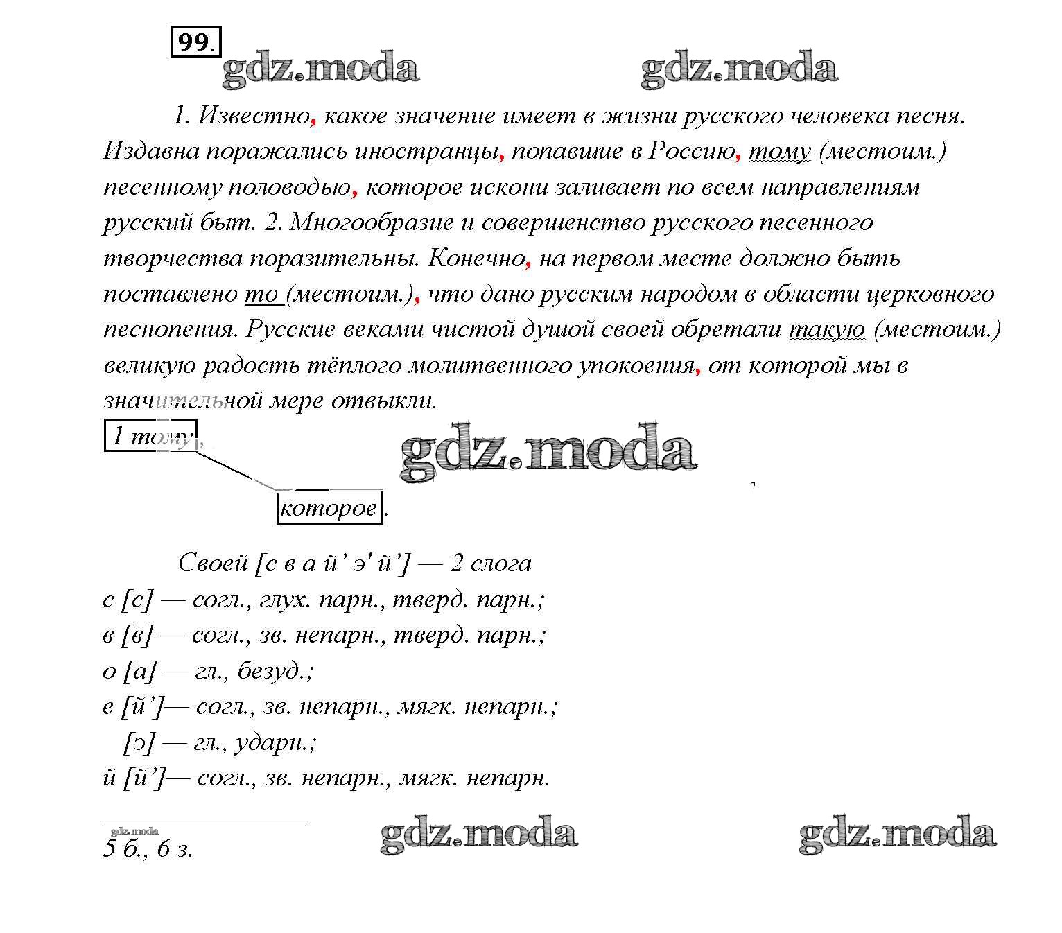 ОТВЕТ на задание № 99 Учебник по Русскому языку 9 класс Тростенцова